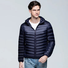 Men's Lightweight White Duck Down Jacket with Hooded Long Sleeve Winter Coat for Young Adults