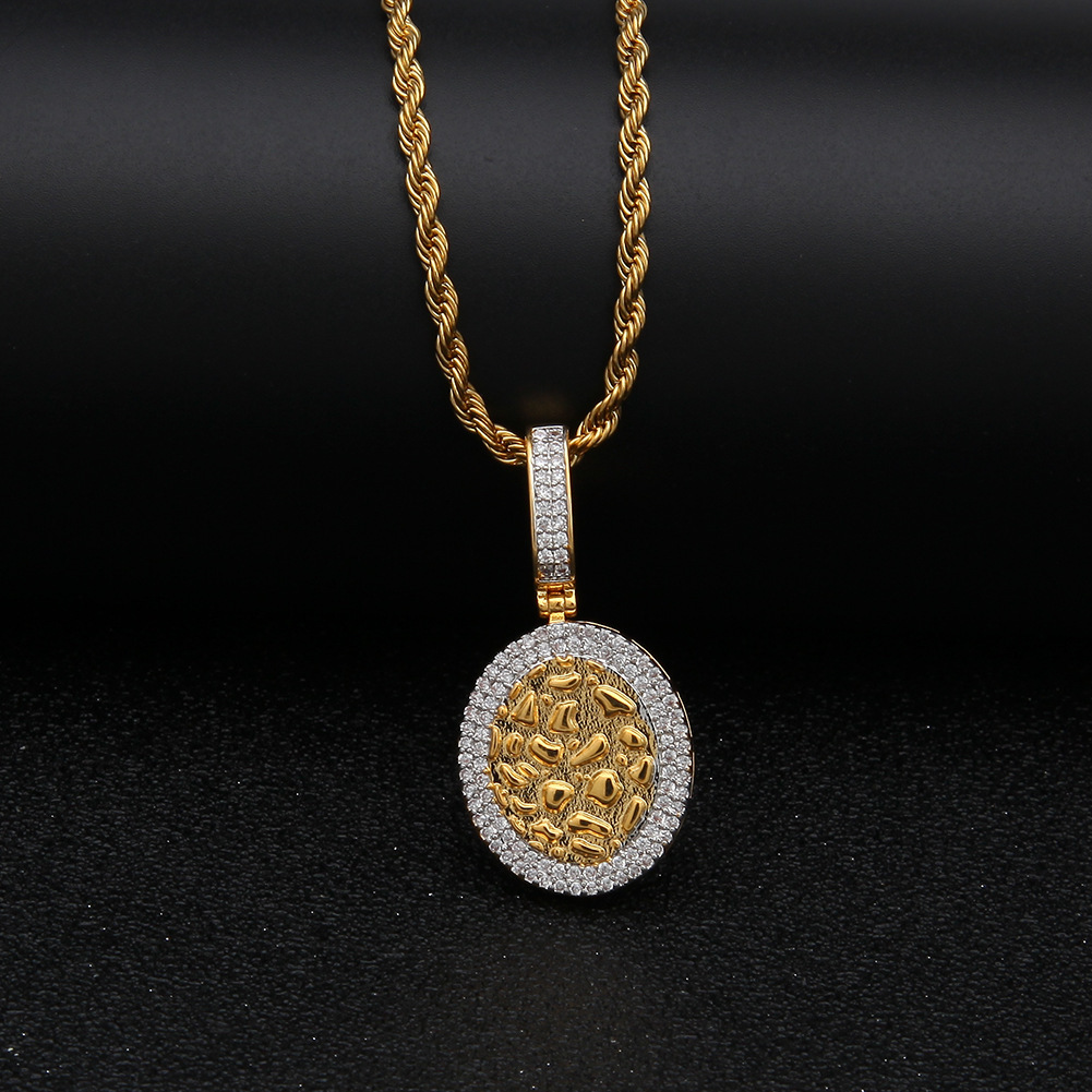 Copper Alloy Punk Ins Necklace with Gold Element, Japanese Samurai Gold Brick Lion Head Collection