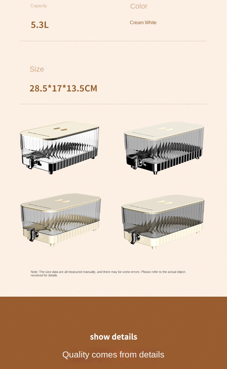 Light Luxury Cold Water Kettle with Faucet for Home Use, 5.3L PE Material, Standard Quality, Light Style