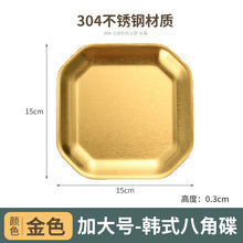 304 Korean Style Stainless Steel Octagonal Dish for Restaurant, Gold Color Saucer for Appetizer, Dessert Plate for Sweet Food