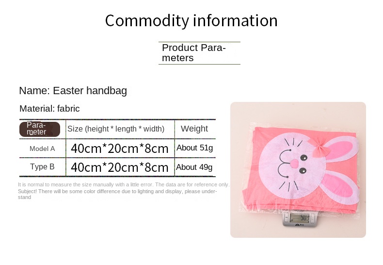 HaoBei Easter Decoration Easter Cartoon Rabbit Handbag