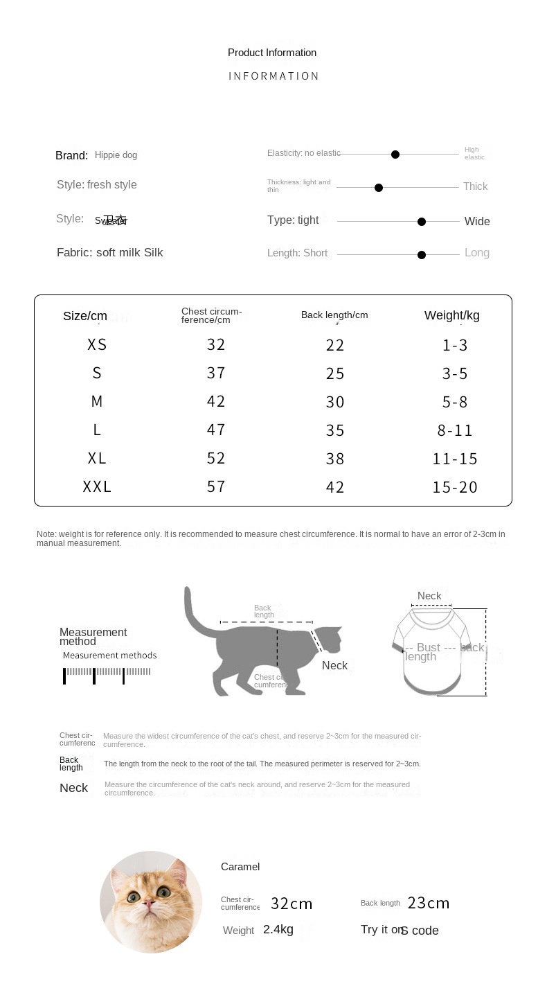 Lovely Cat Autumn/Winter Clothing, No Hair Shedding, Suitable for All Cats
