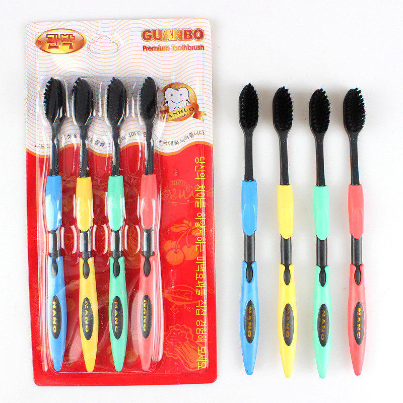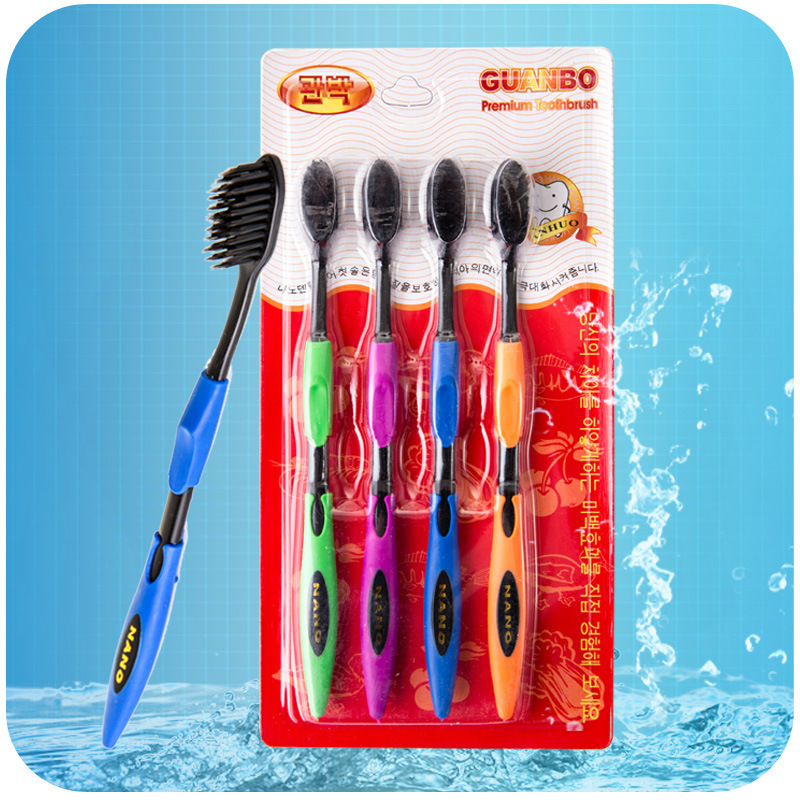 Adult Bamboo Charcoal Toothbrush with Soft Bristles and Thick Handle for Korean Version