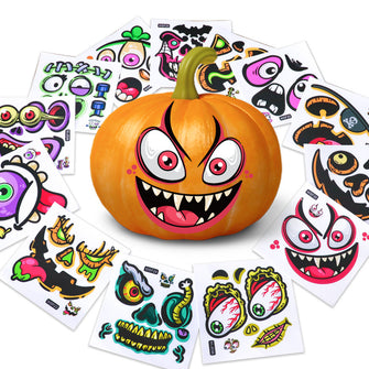 Halloween DIY Sticker Party Decorations with Pumpkin Lights and Ghost Face Stickers