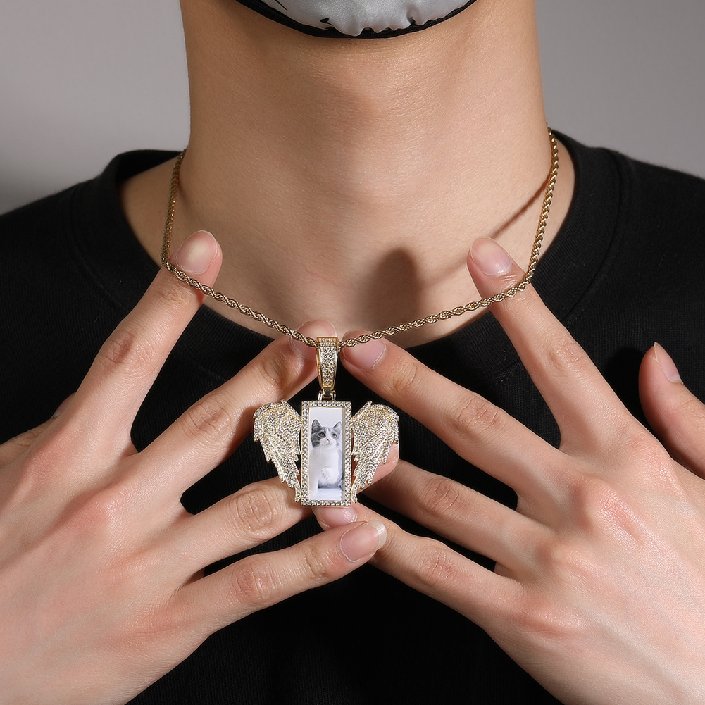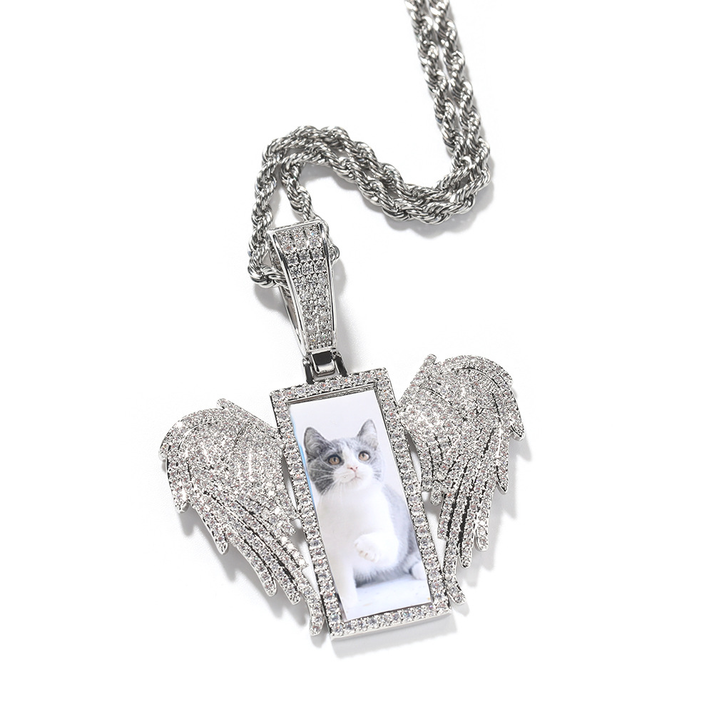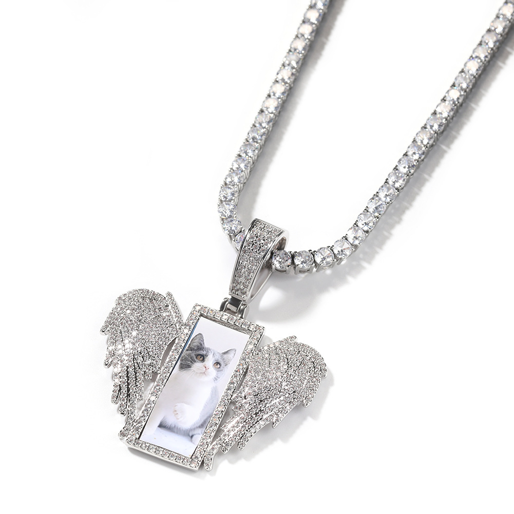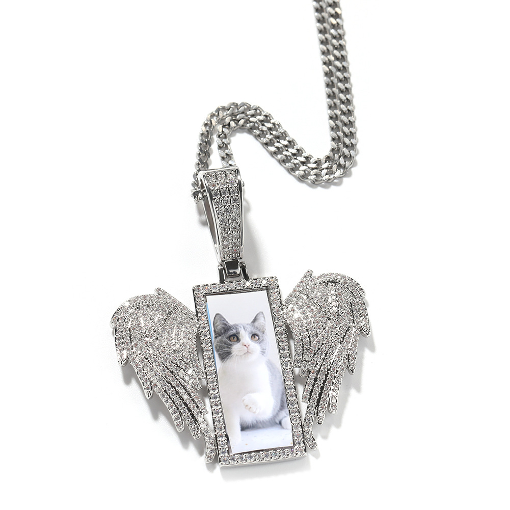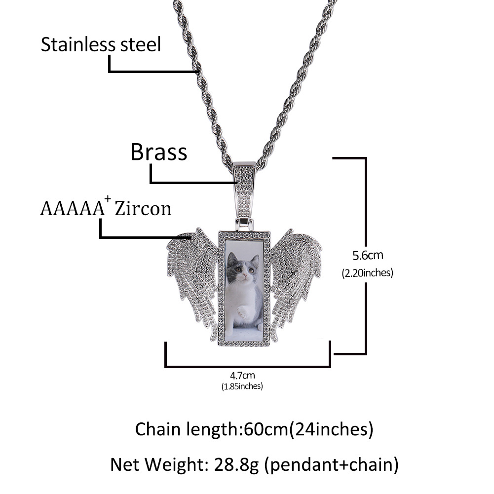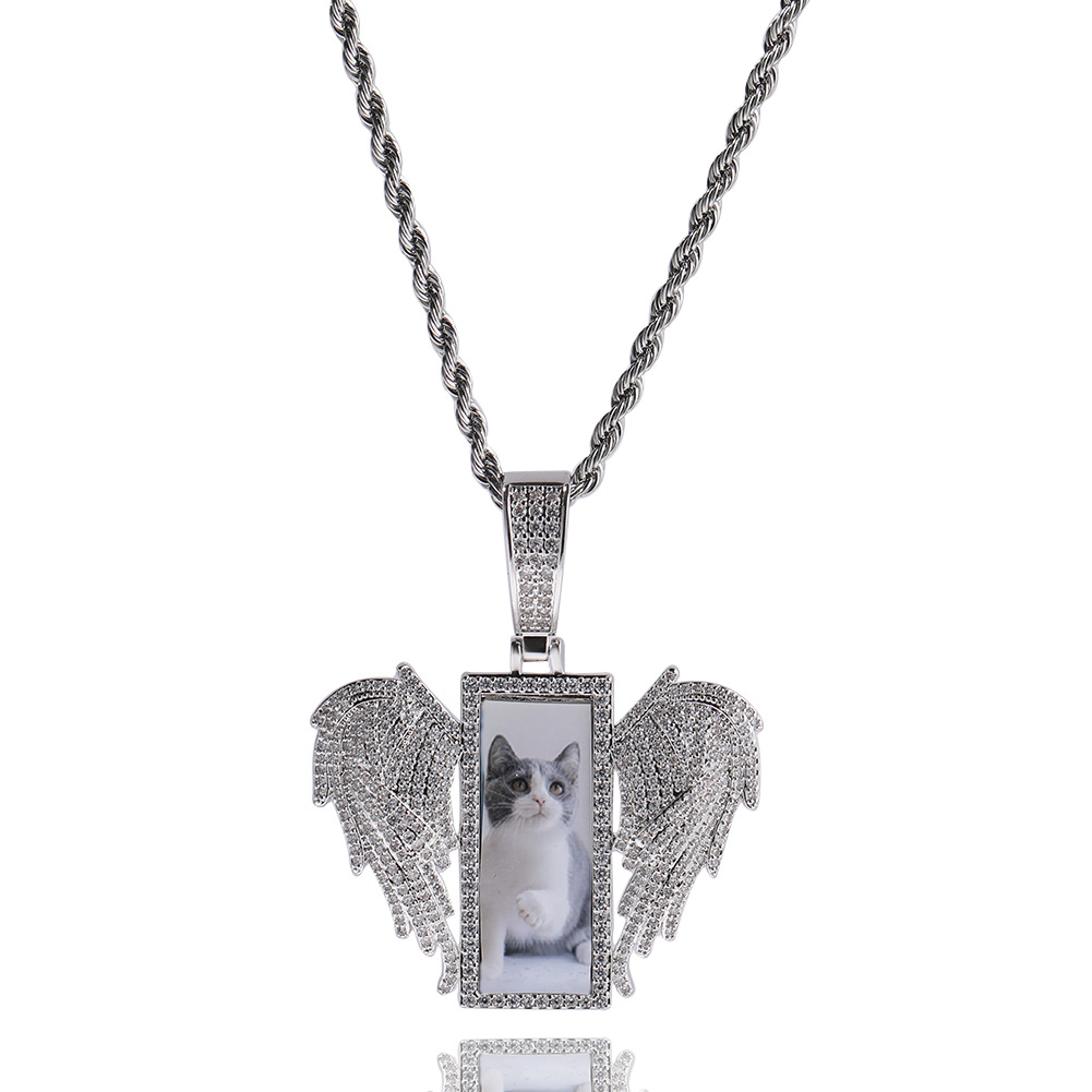 Hip-Hop Trendy Rectangle Wing Photo Pendant Creative Ins Style Necklace