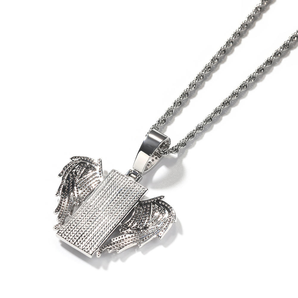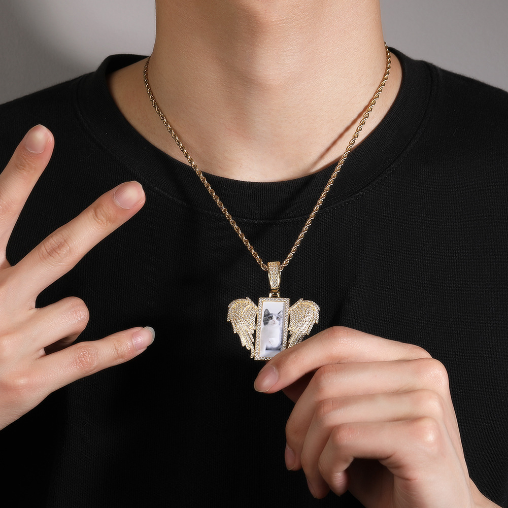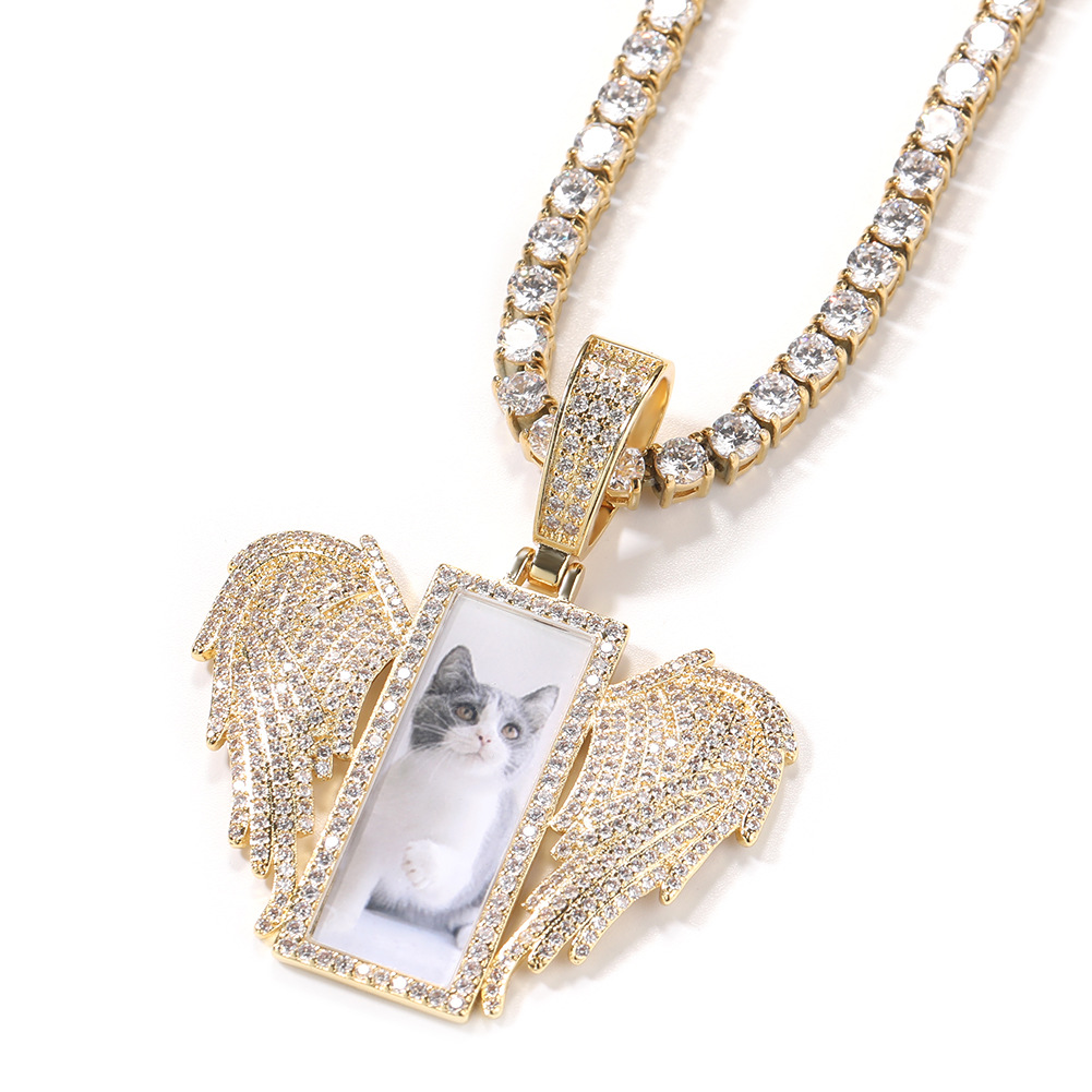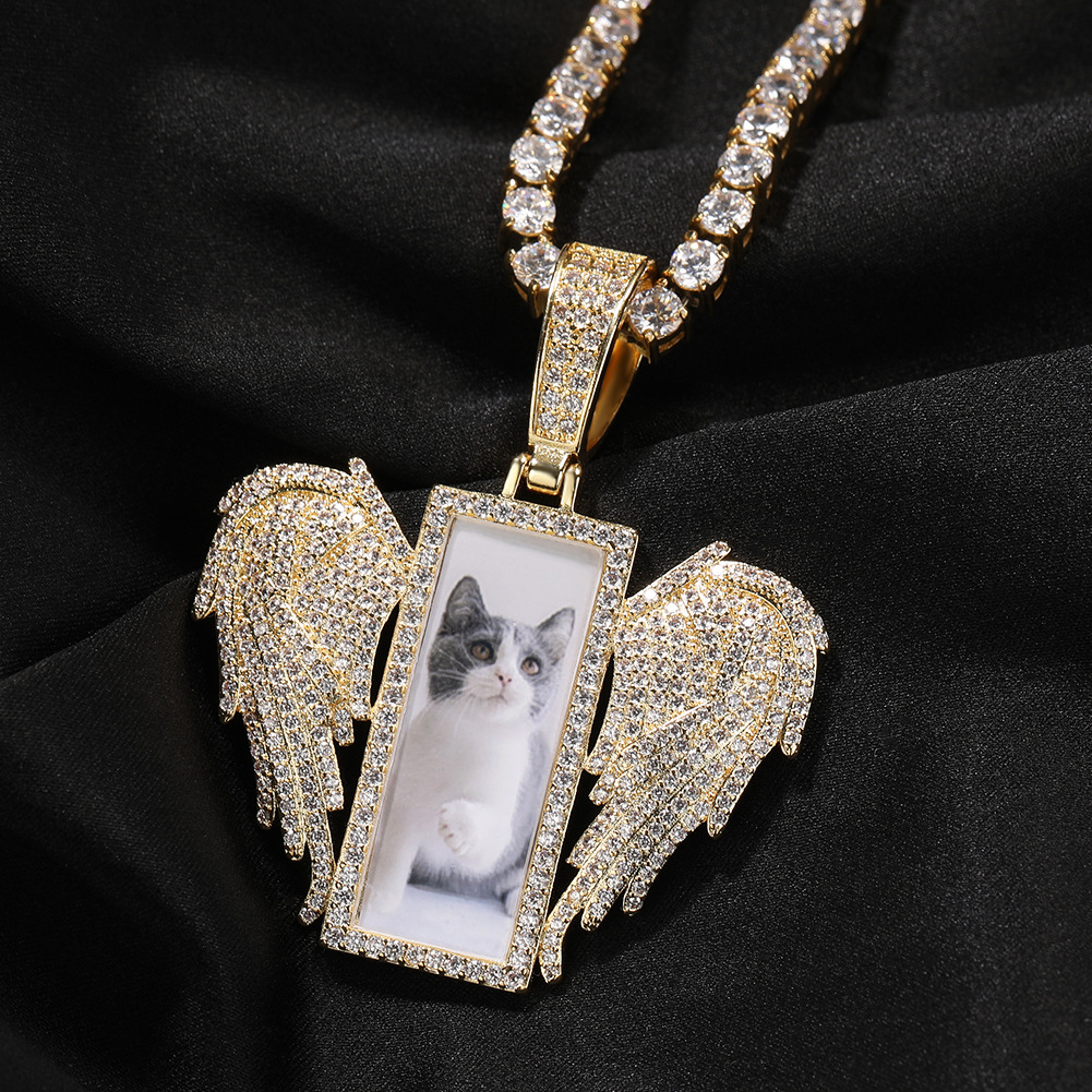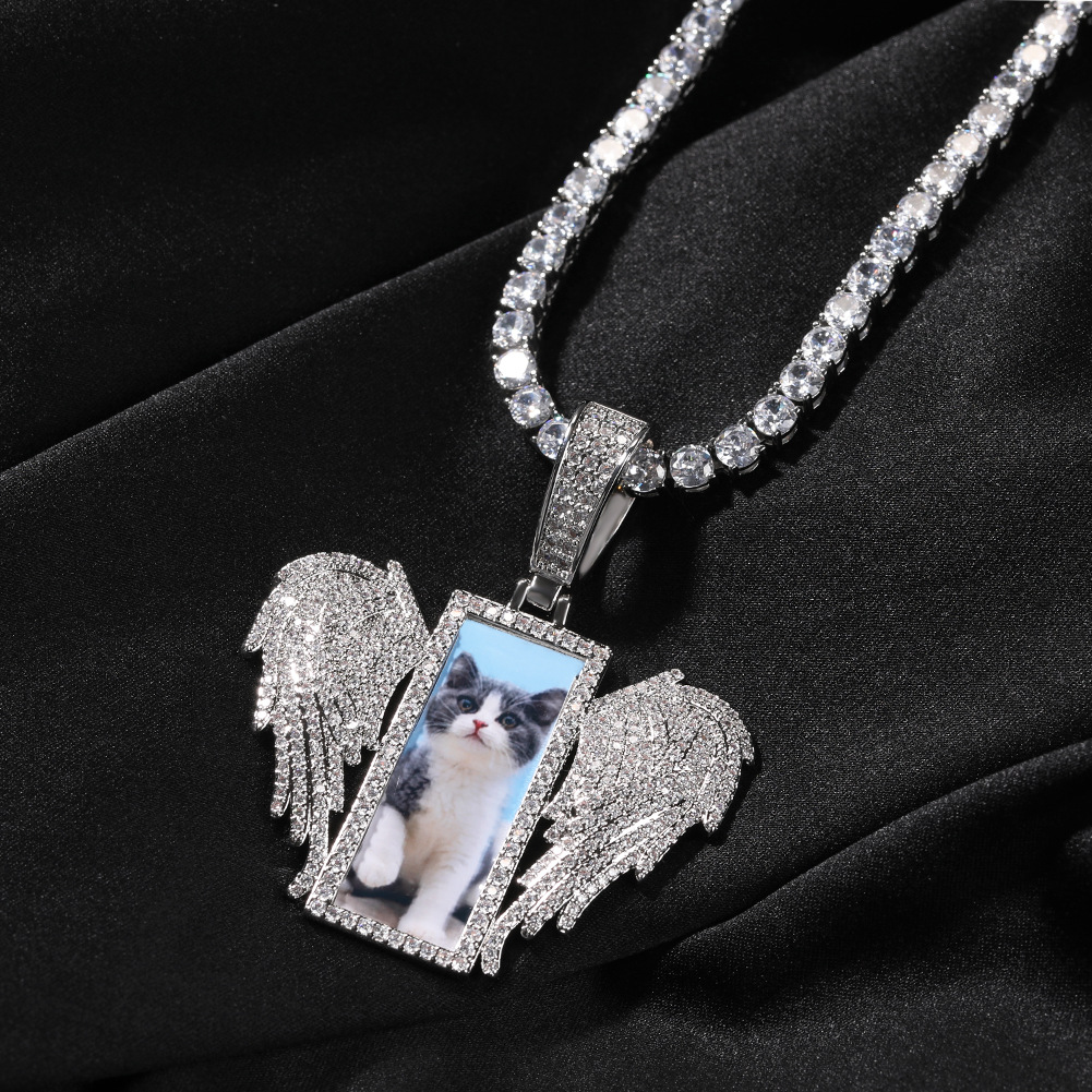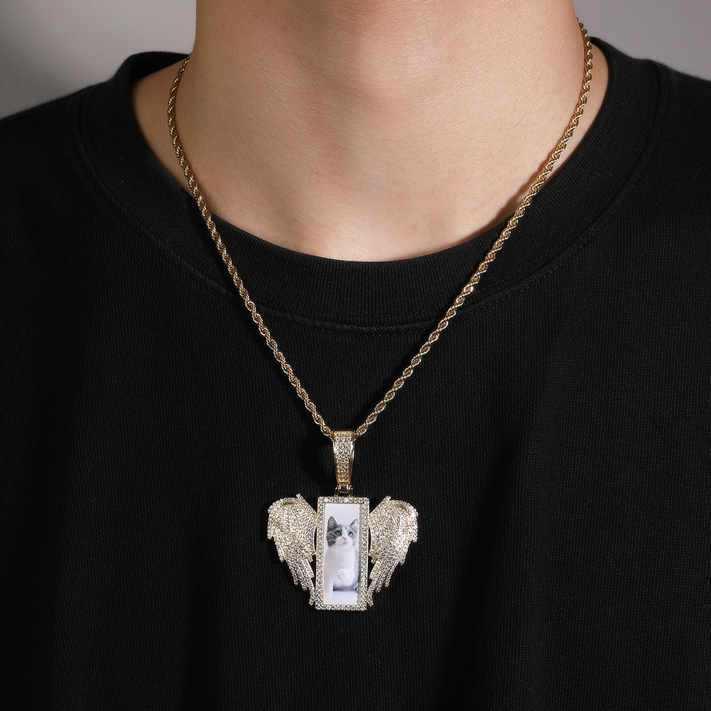 Hip-Hop Trendy Rectangle Wing Photo Pendant Creative Ins Style Necklace