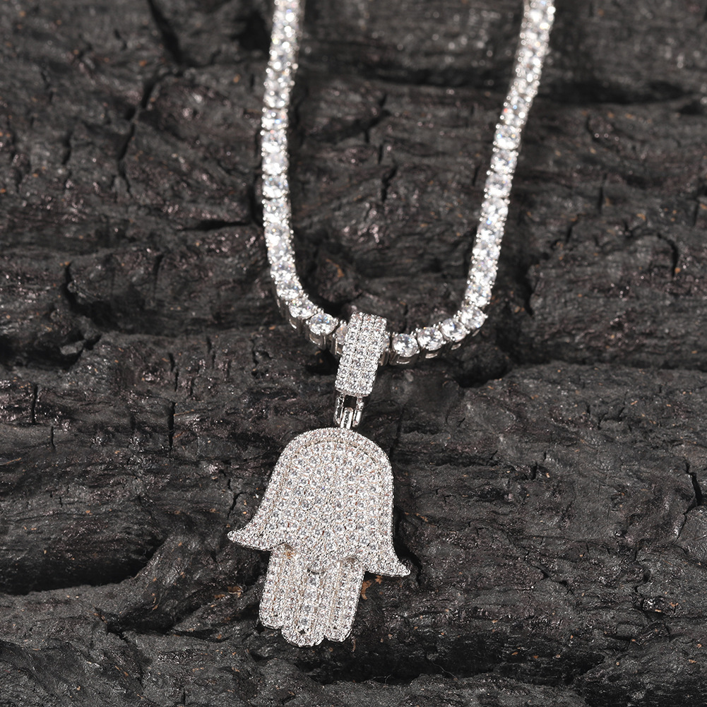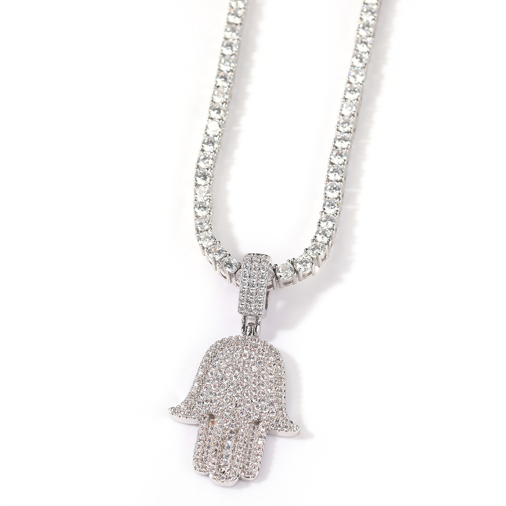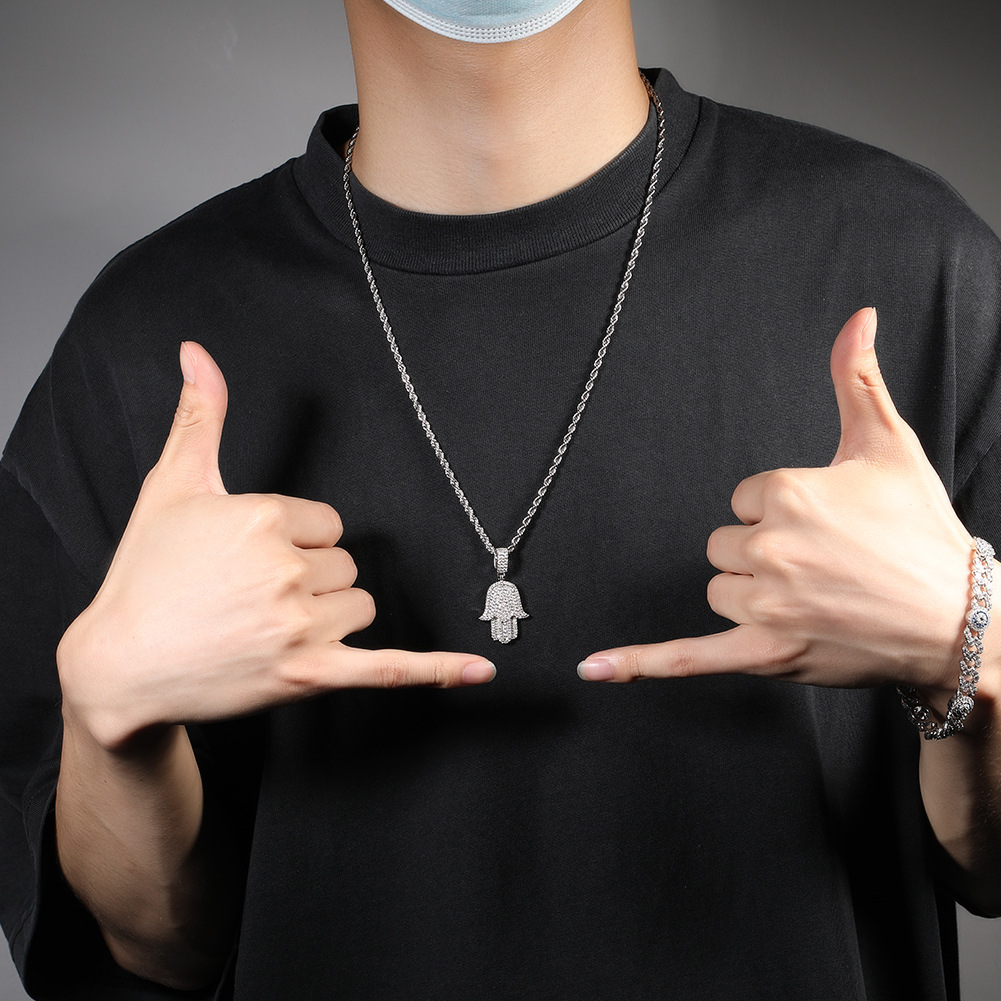 Fashionable Hand of Fatima Necklace with Diamonds - European and American Style