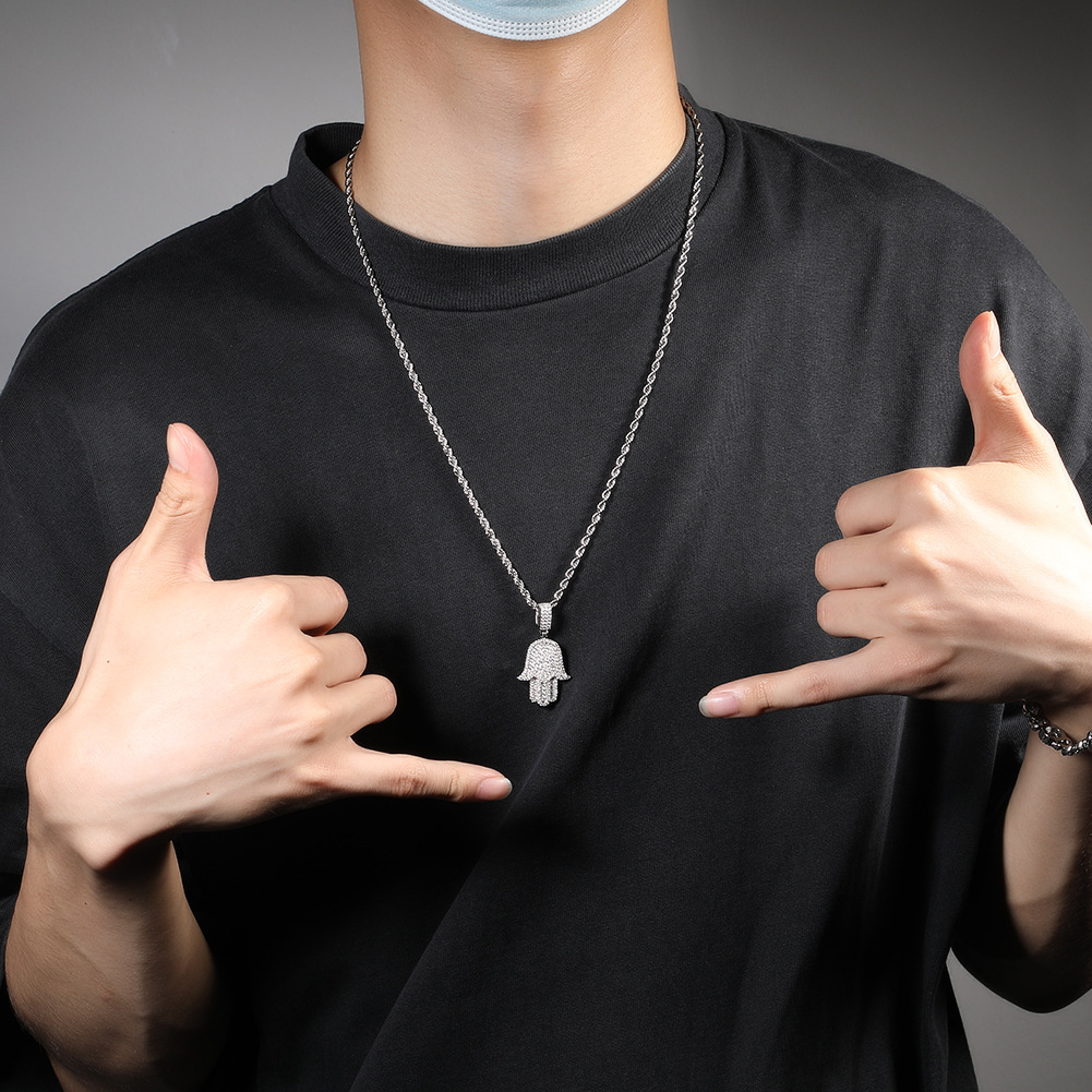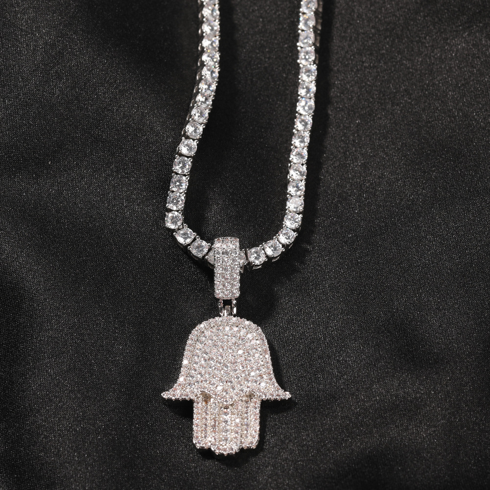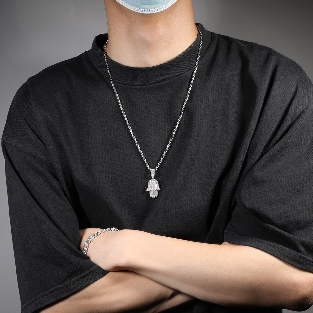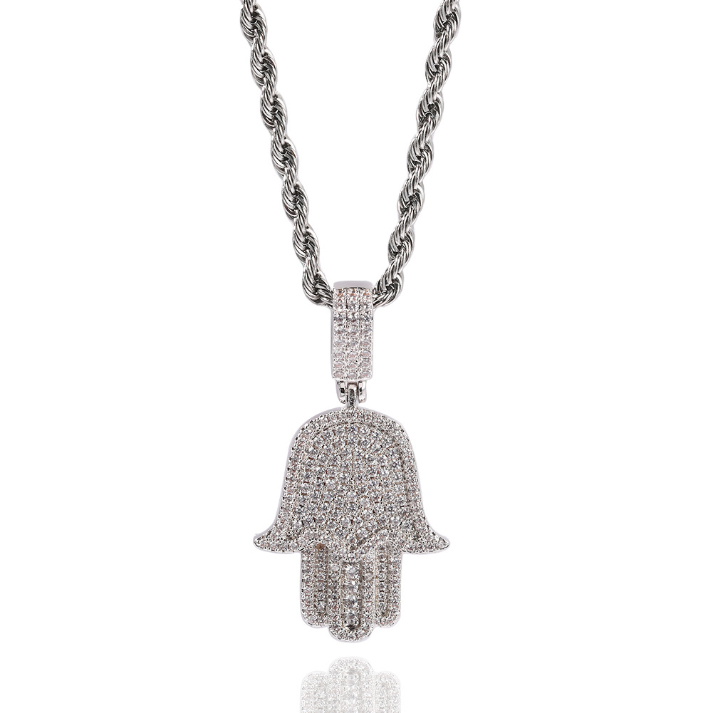 Fashionable Hand of Fatima Necklace with Diamonds - European and American Style