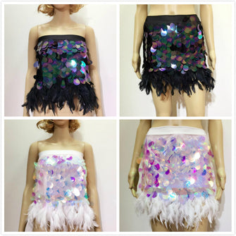 Fashionable Performance Outfit for Women - European and American Style with Feather and Sequins