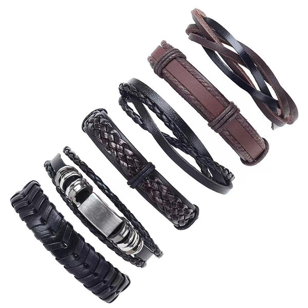 - ["6-piece punk retro bracelet set","Star shape design","Leather material","No safety function","Perfect for travel souvenirs"]