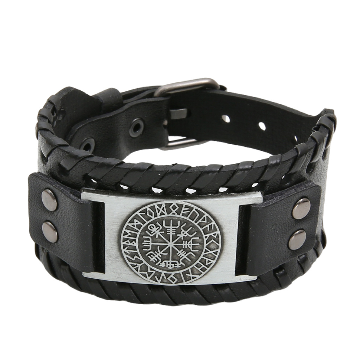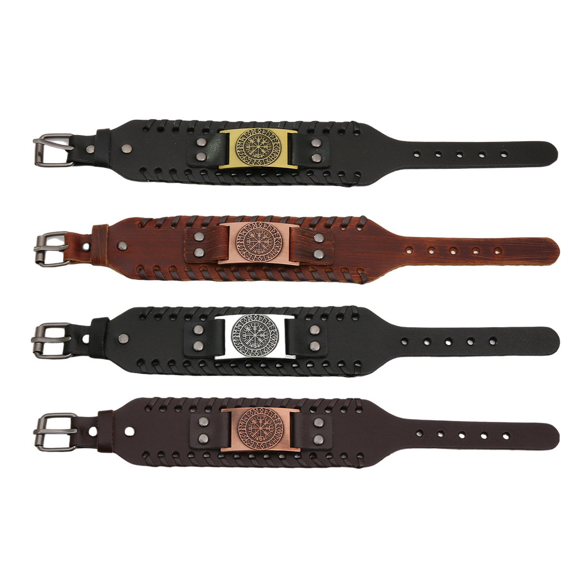 Retro Pirate Leather Bracelet for Men Punk Wide Cuff Bracelet with Guide Compass