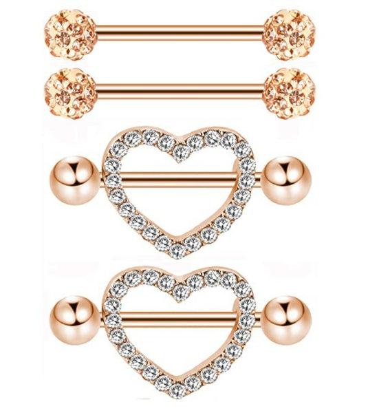 14G Non-Rust Steel Heart-Shaped Double Layer Full Drilled Ball Nipple Piercing Jewelry for Body Piercing