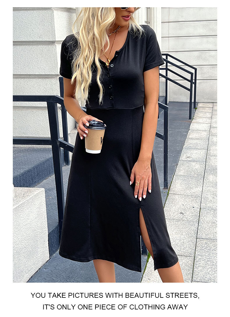 {"Style":"Casual Style","Pattern":"Solid Color","Neckline":"Pullover","Skirt Type":"A-Line Skirt","Style Type":"Japanese and Korean Casual","Waist Type":"Mid-Waist","Collar Type":"Round Collar","Fabric Name":"Polyester","Sleeve Type":"Regular Sleeve","Skirt Length":"Midi Skirt","Craftsmanship":"Pasting/Piecing","Sleeve Length":"Short Sleeve","Fashion Element":"Slit","Place of Origin":"Guangzhou","Combination Form":"Single Piece","Cross-border Style Type":"Comfortable Casual","Main Fabric Component 2":"Spandex","Main Fabric Composition":"Polyester (Polyester Fiber)","Main Fabric Component 2 Content":"30% or less","Main Fabric Composition Content":"90% (Excluding) - 95% (Including)"}