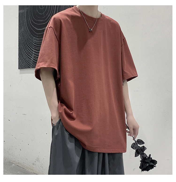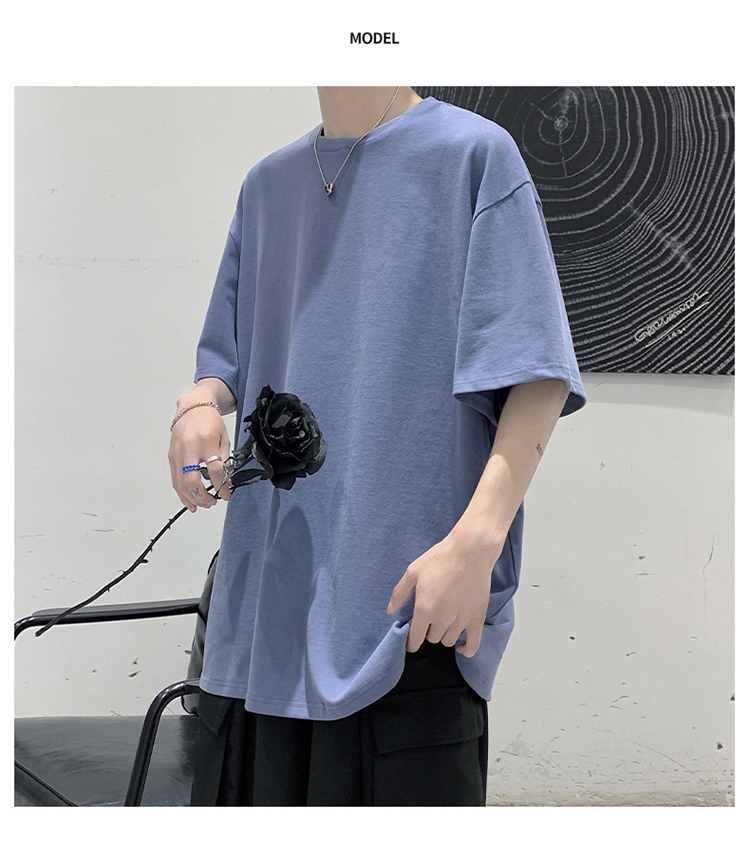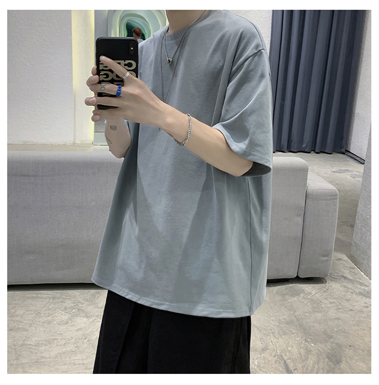 Men's Summer Casual Pure Color Short Sleeve T-Shirt for Young Adults