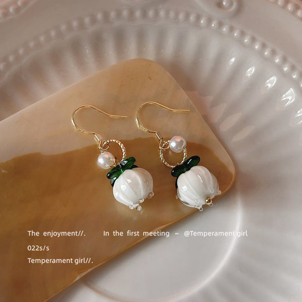 925 Silver 14K Handmade Design Glass Lily Earrings for Women
