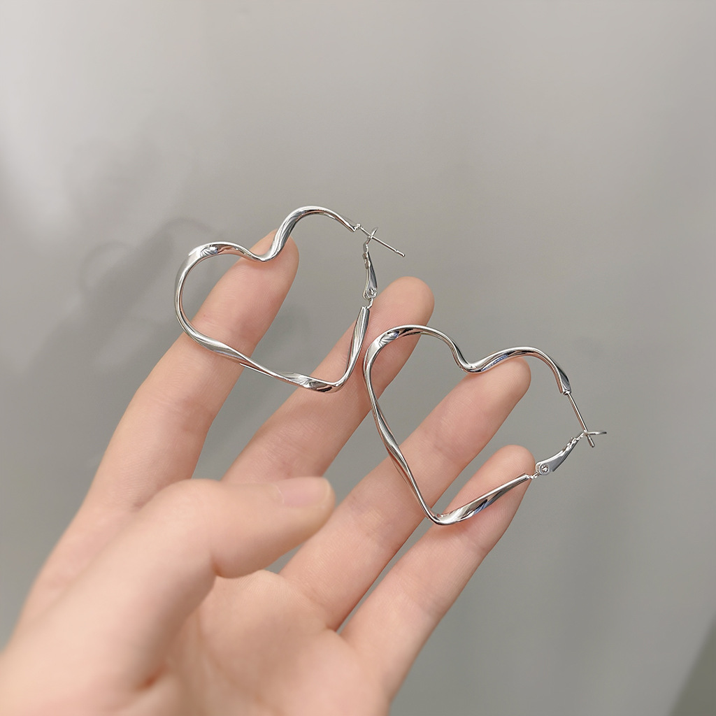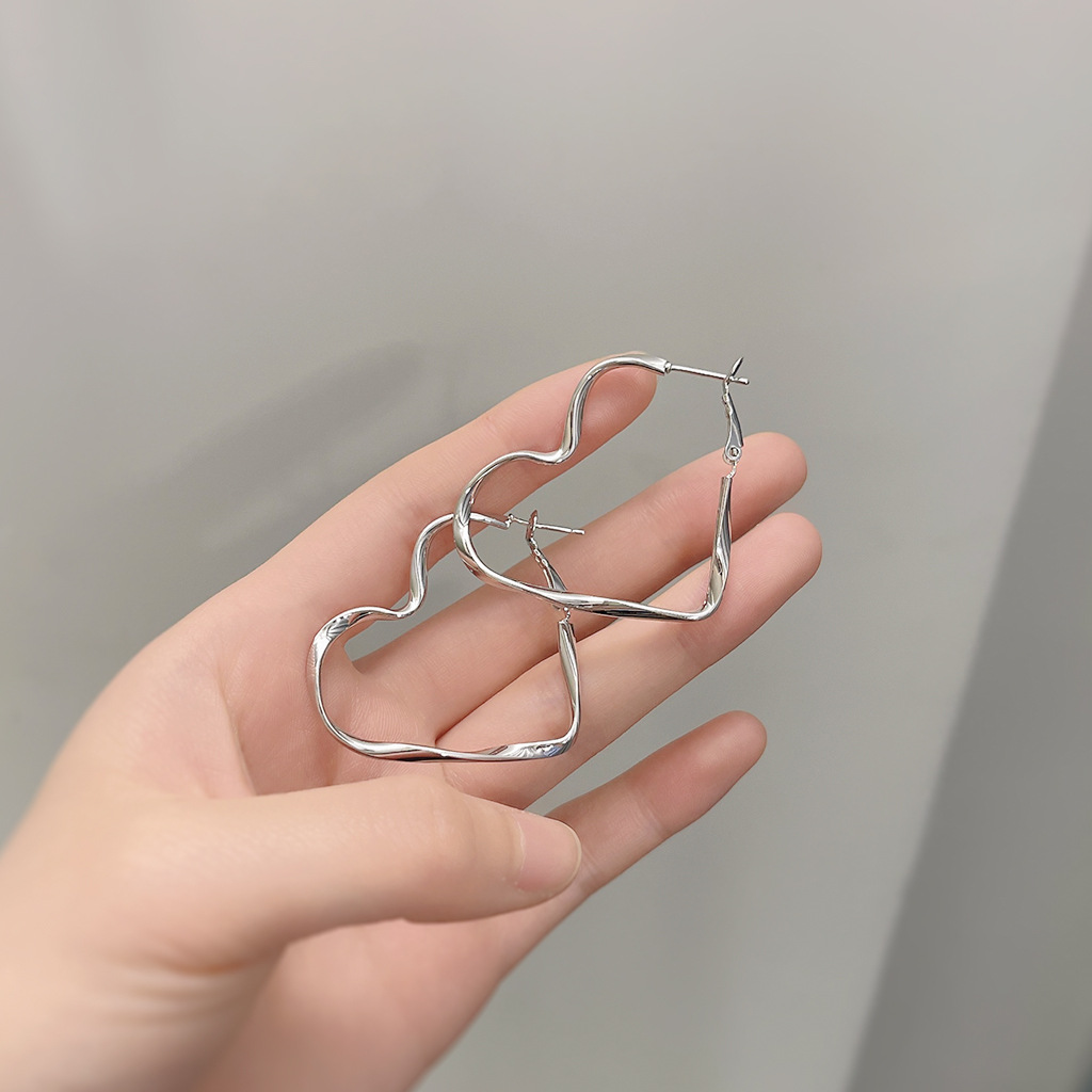 925 Silver Love Heart Earring, Korean-Japanese Style, Female Heart-Shaped Earring, Perfect Gift for Weddings, Travel, and Employee Benefits