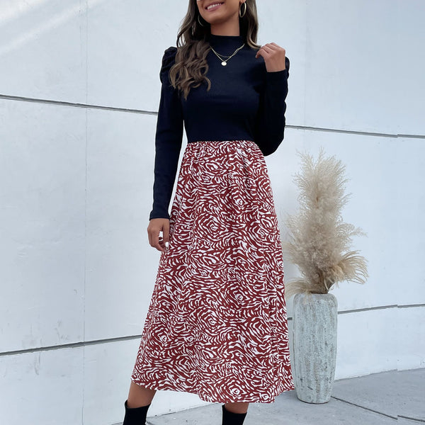 {"Style":"Elegant Style","Pattern":"Mixed Color","Neckline":"Pullover","Skirt Type":"A-Line Skirt","Style Type":"Atmospheric Commuting","Waist Type":"Mid-Waist","Collar Type":"Half-High Collar","Fabric Name":"Polyester","Sleeve Type":"Puff Sleeve","Skirt Length":"Mid-length Skirt","Craftsmanship":"Pasting/Piecing","Sleeve Length":"Long Sleeve","Fashion Element":"Color Block","Place of Origin":"Guangzhou","Combination Form":"Single Piece","Cross-border Style Type":"Elegant Temperament","Main Fabric Composition":"Polyester (Polyester Fiber)","Main Fabric Composition 2":"Polyester (Polyester Fiber)","Main Fabric Component 2 Content":"30% or less","Main Fabric Composition Content":"95% or more"}