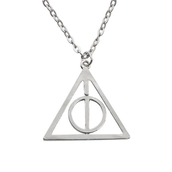 Harry Potter Deathly Hallows Hollow Triangle Pendant Necklace Lockbone Chain