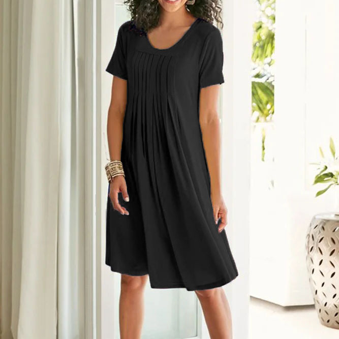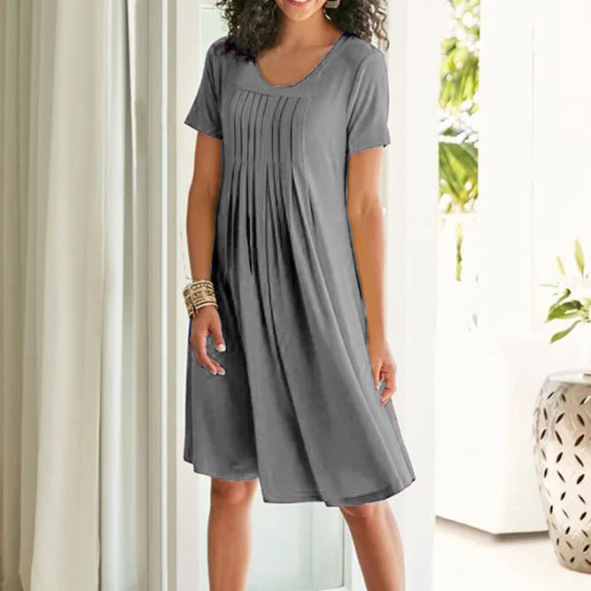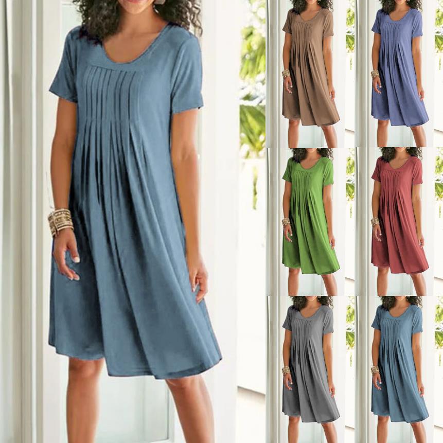 - ["Made of 95% Polyester and 30% Cotton material, comfortable to wear","Round neck design, elegant and stylish","Floral print, perfect for summer","Mid-length, suitable for many occasions","Loose fit, flattering and comfortable"]