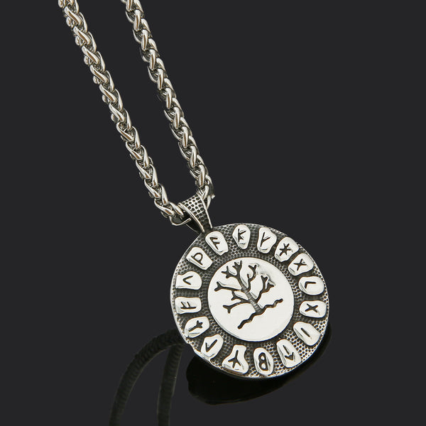 Vintage Life Tree Titanium Steel Pendant Necklace with Gold Elements for Men