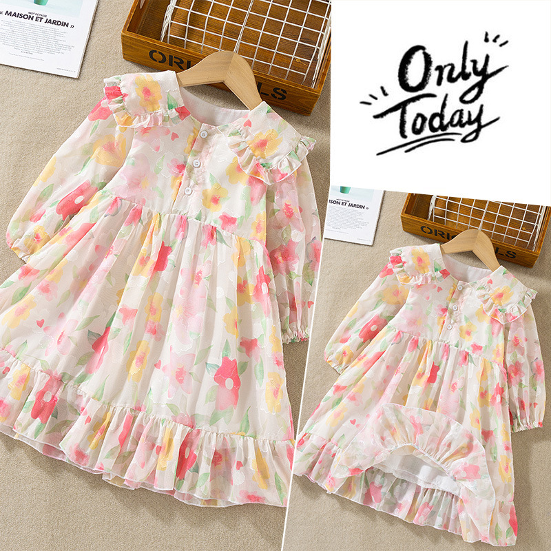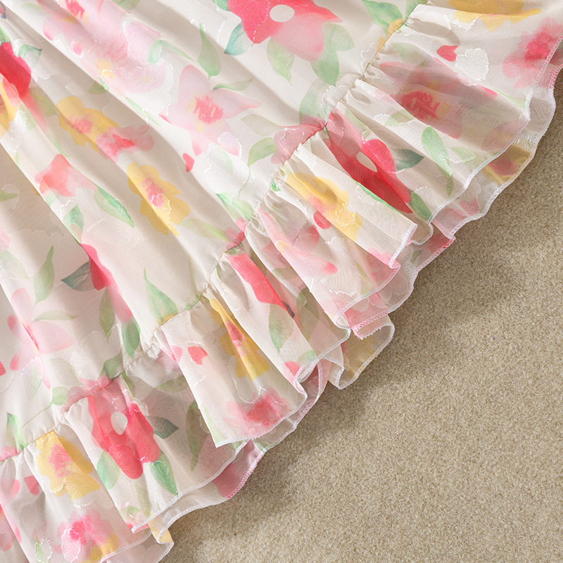Girls Floral Dress, Korean Style, 85% Cotton, B Level Safety, Suitable for 3-8 Years Old