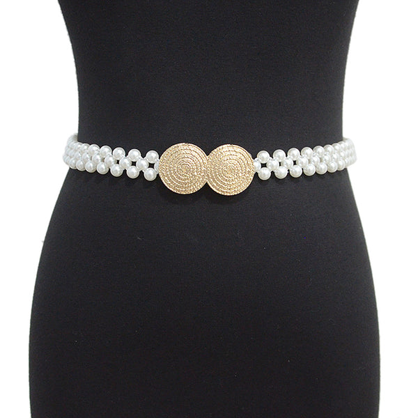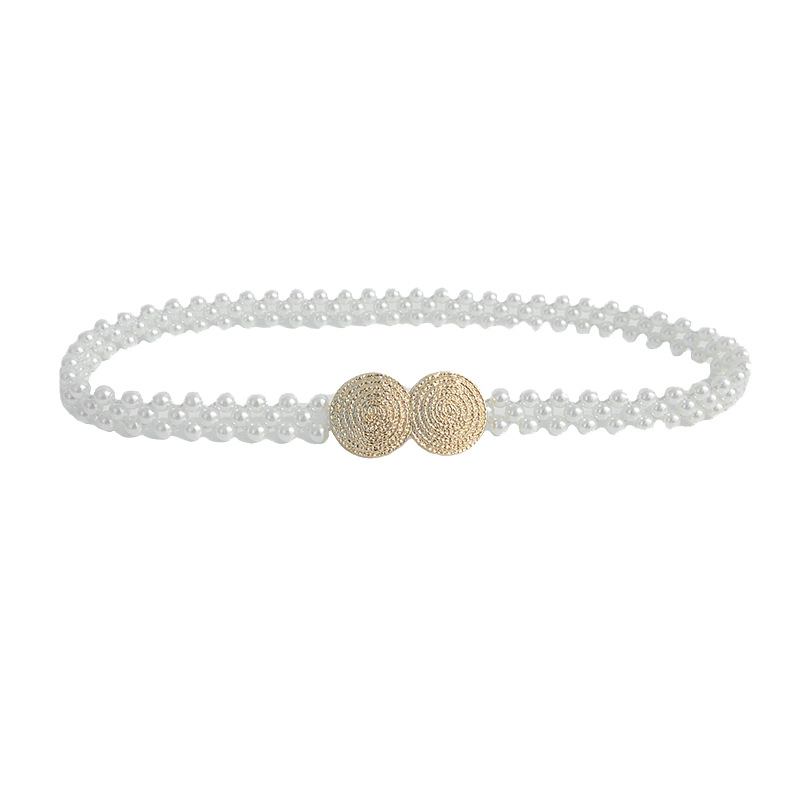 Women Summer New Pearl Waist Belt Elastic Slim Waist Chain Accessories with Double Circle Buckle for Casual Wear