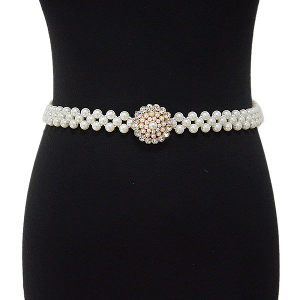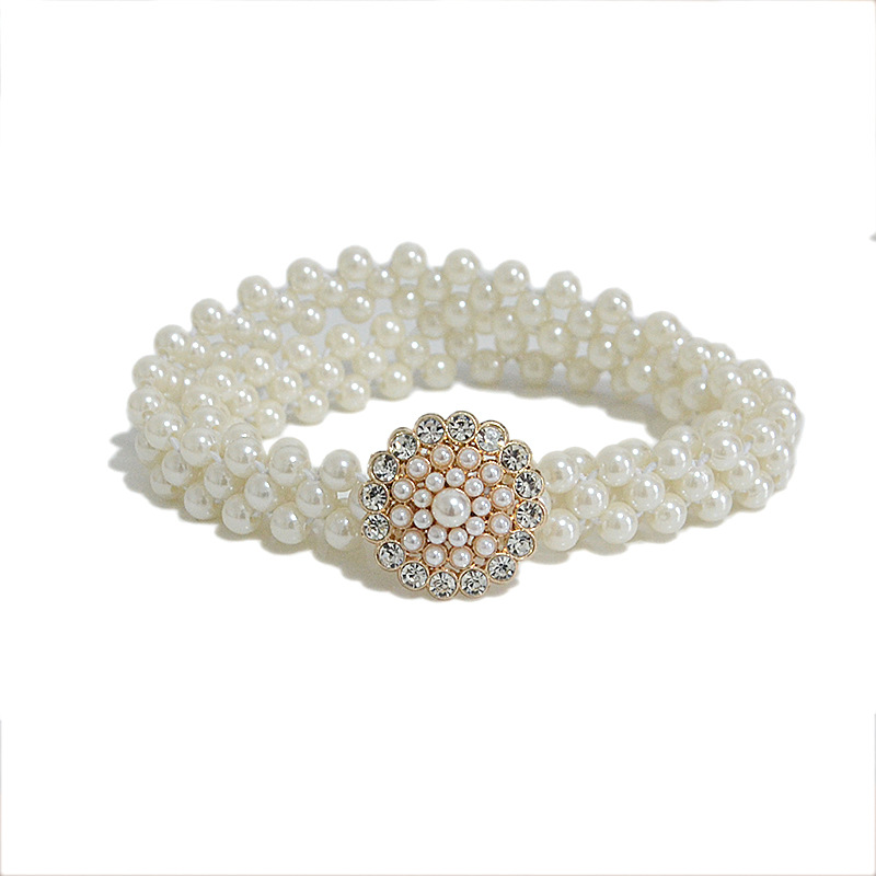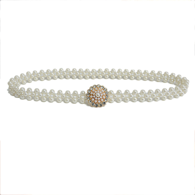 Women's Summer New Pearl Waist Belt with Round Pearl and Water Drill Decoration