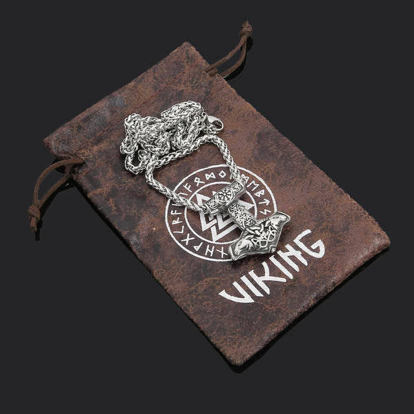 Men's Viking Titanium Necklace with Double Ram's Head Pendant and Non-Rust Steel Chain