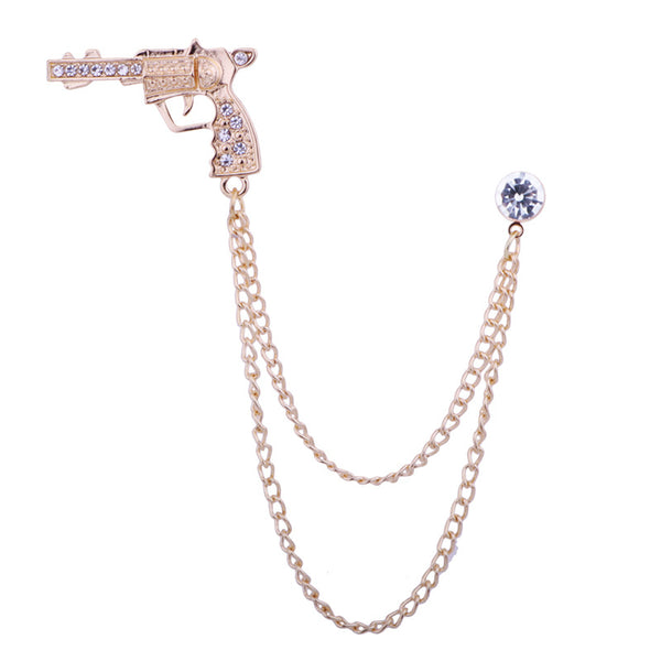 Men's Stunning Handgun Brooch with Diamond Necklace Chain for Gift Giving