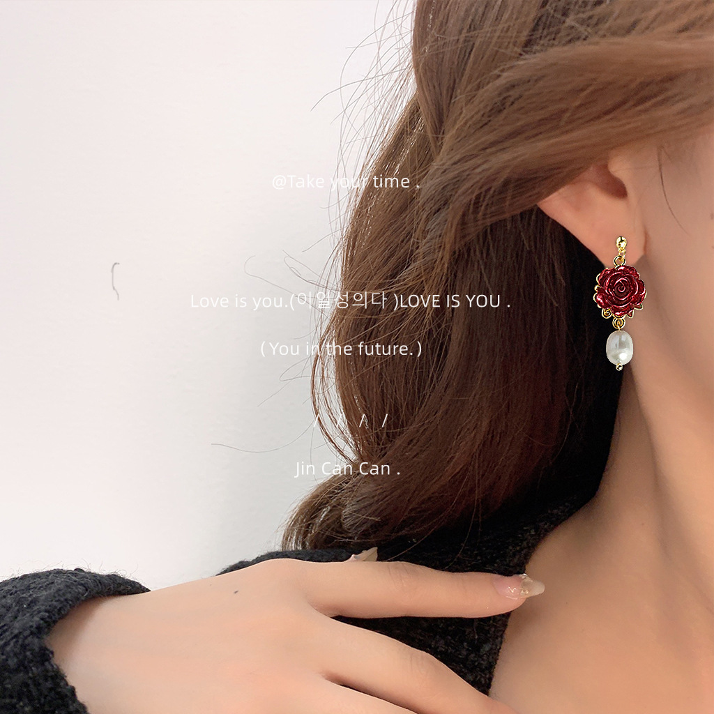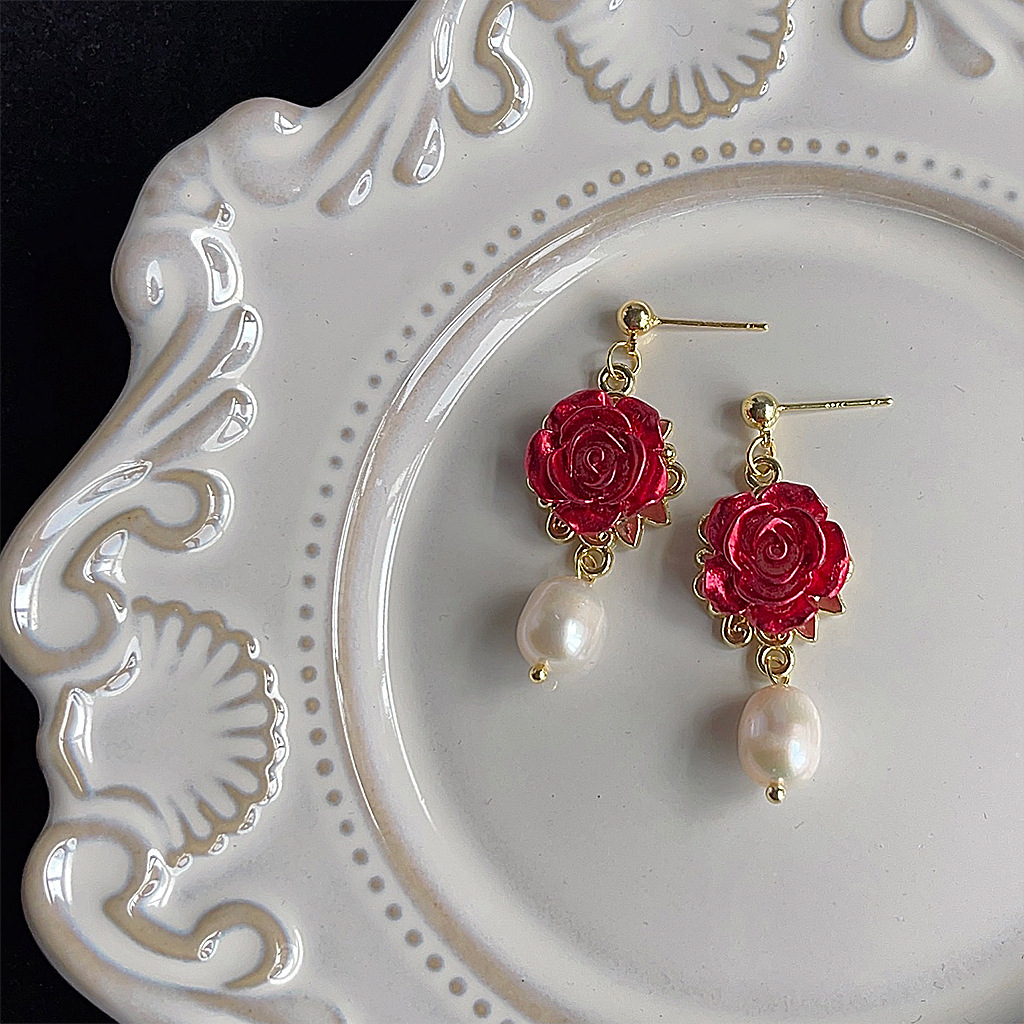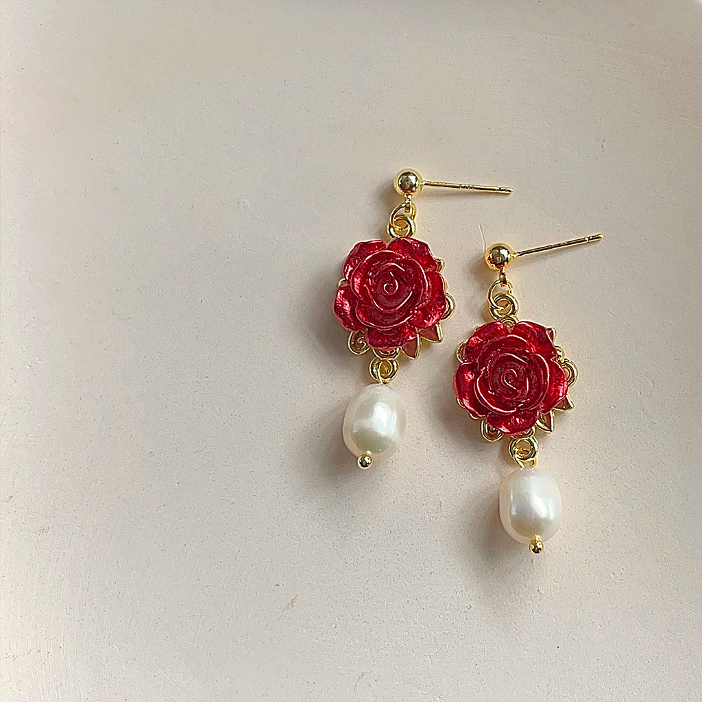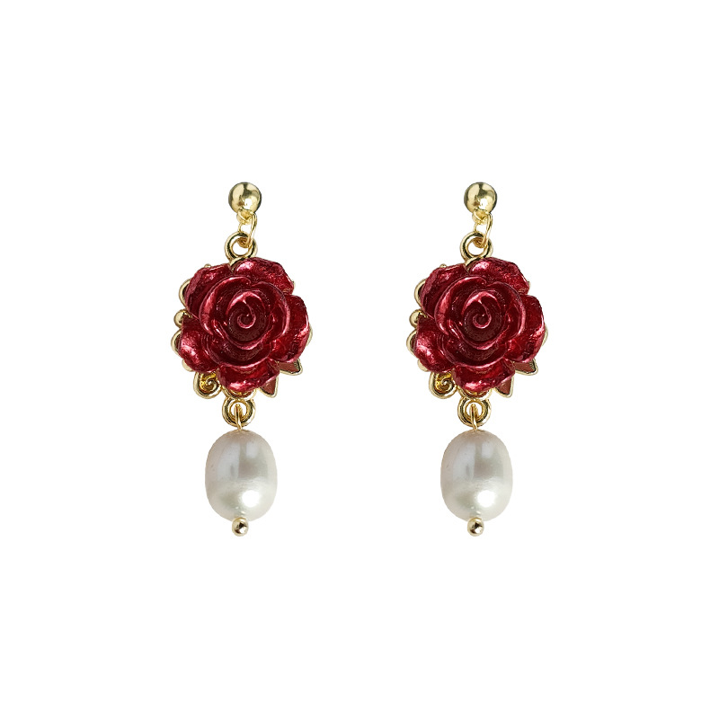 - ["Handmade Design Sense","925 Silver 14K Rose Earrings","Vintage Style Freshwater Pearl","Unique Flowery Style","Factory Jewelry"]