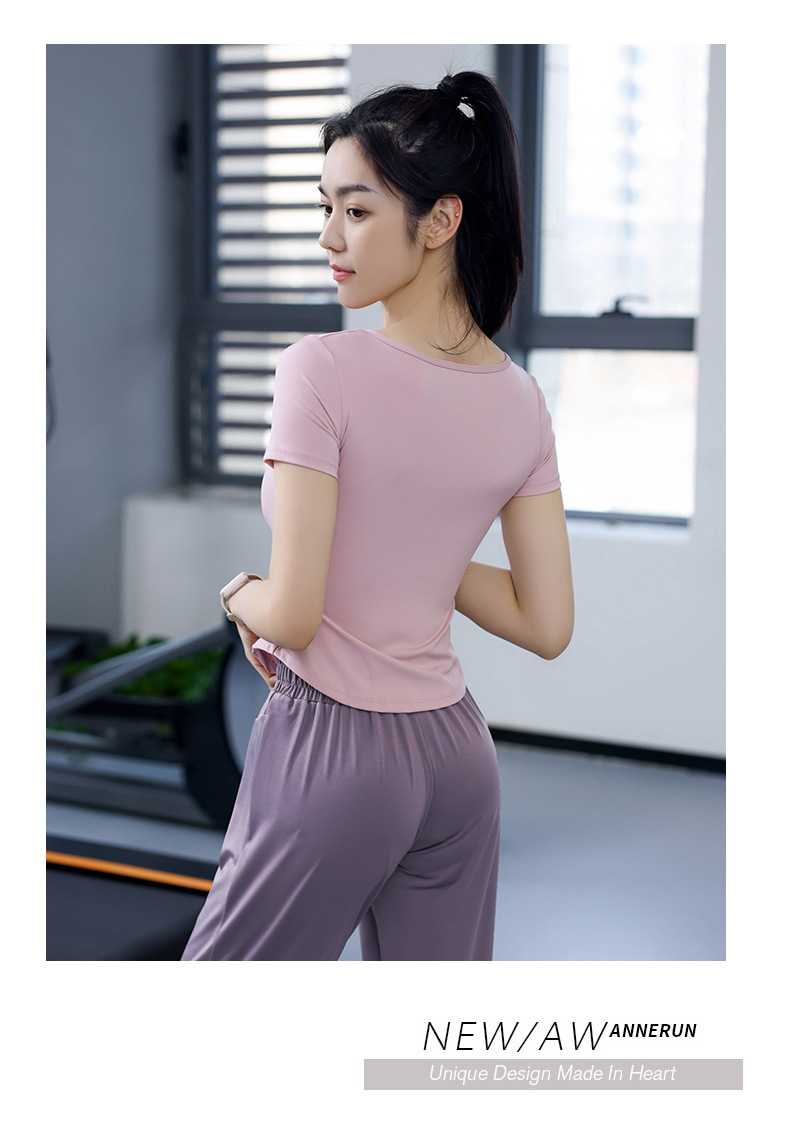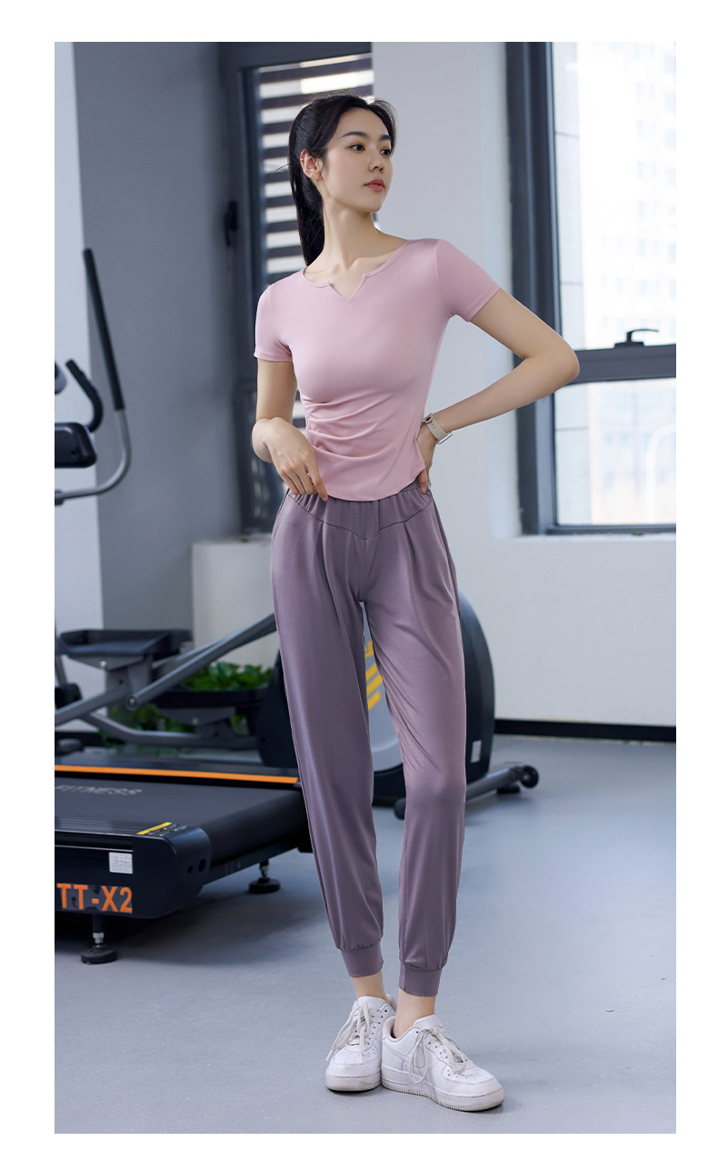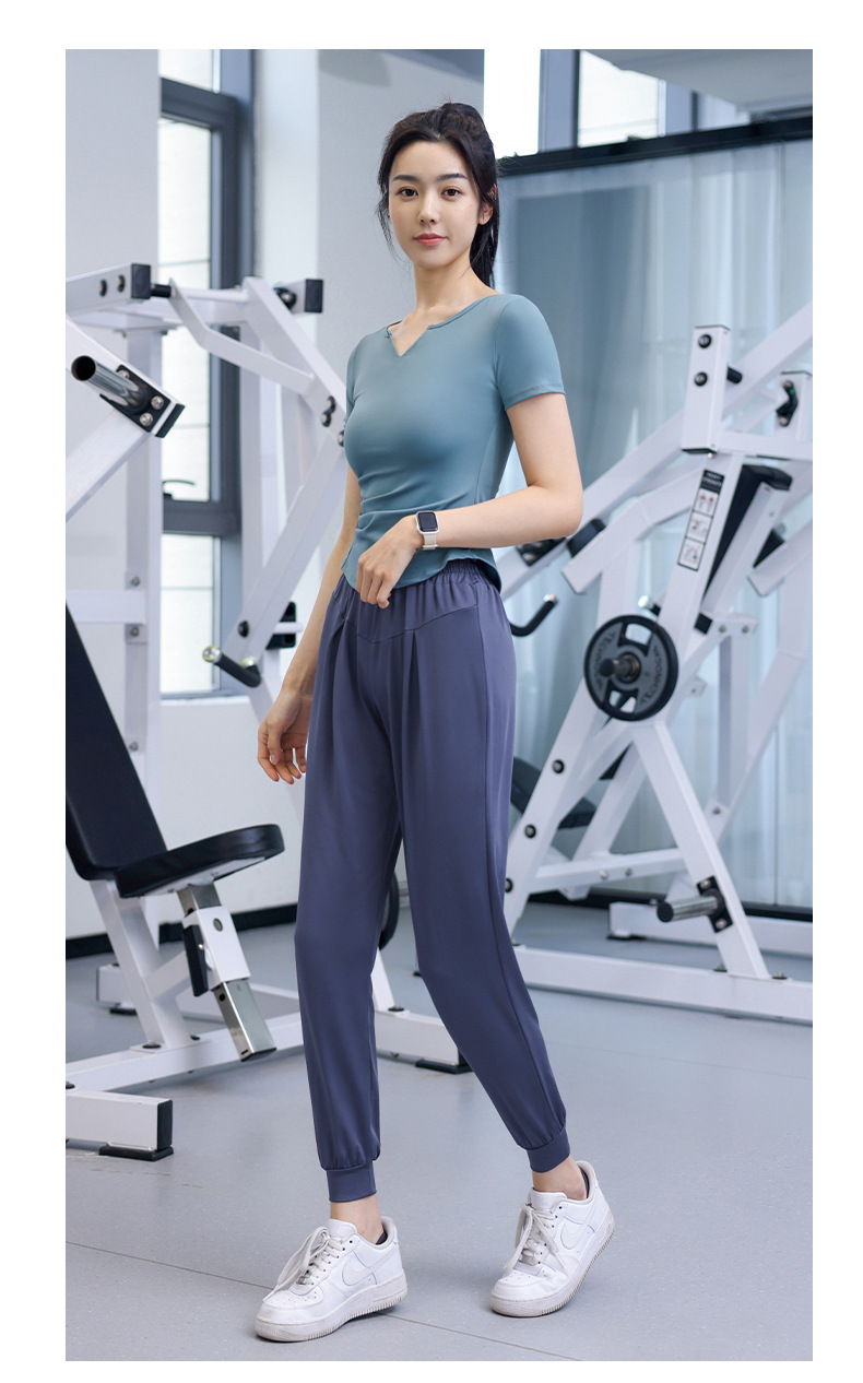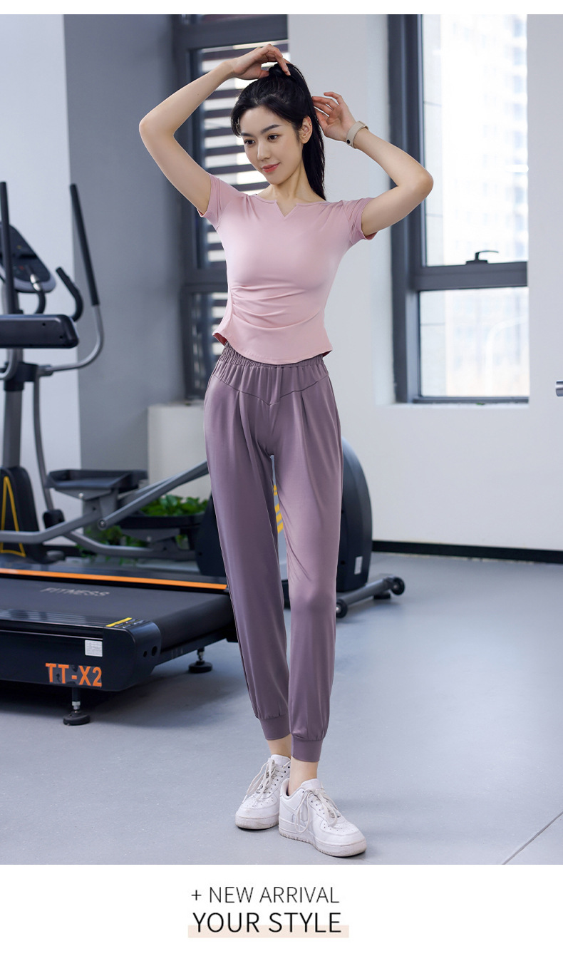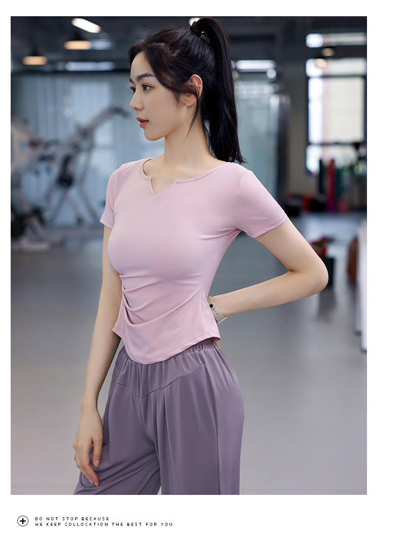 Women's Quick-Dry Short Sleeve T-Shirt with V-Neck and Tucks for Running and Exercise
