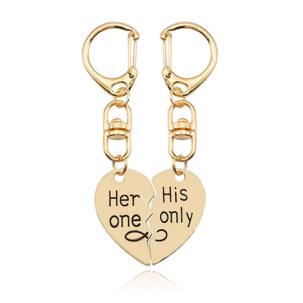 Fashionable Love Keychain with Splicing Heart Shape for Couples and Best Friends