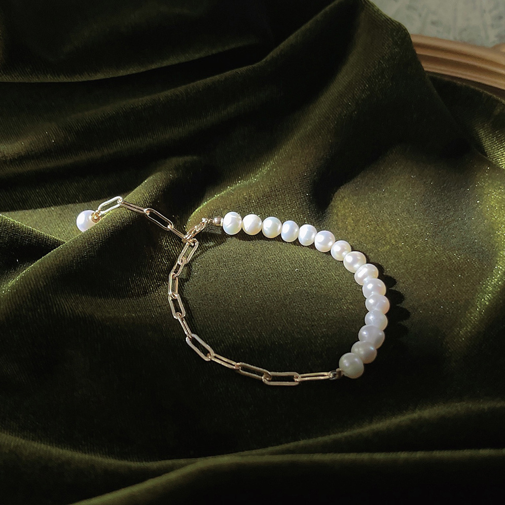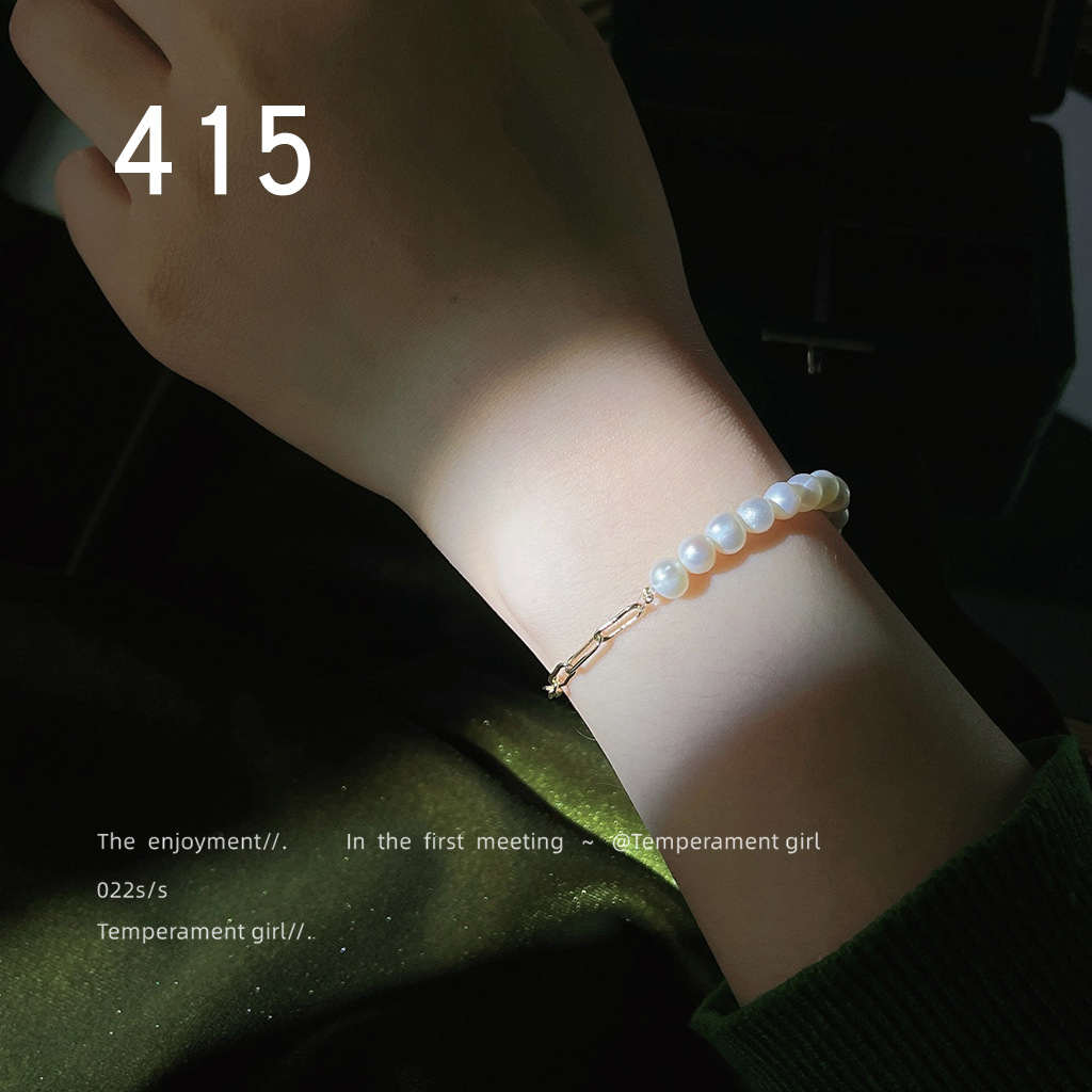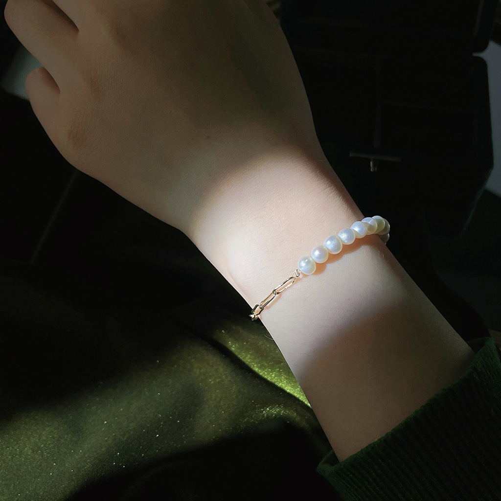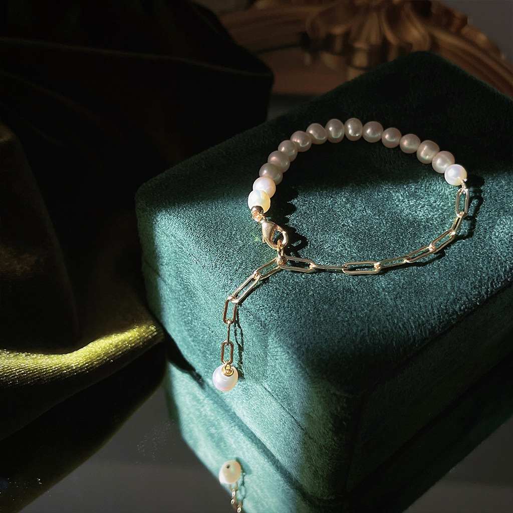French Light Luxury 14K Plated Copper Handmade Design Pearl Bracelet Super Fairy Quality Hand Ring Hand Accessories