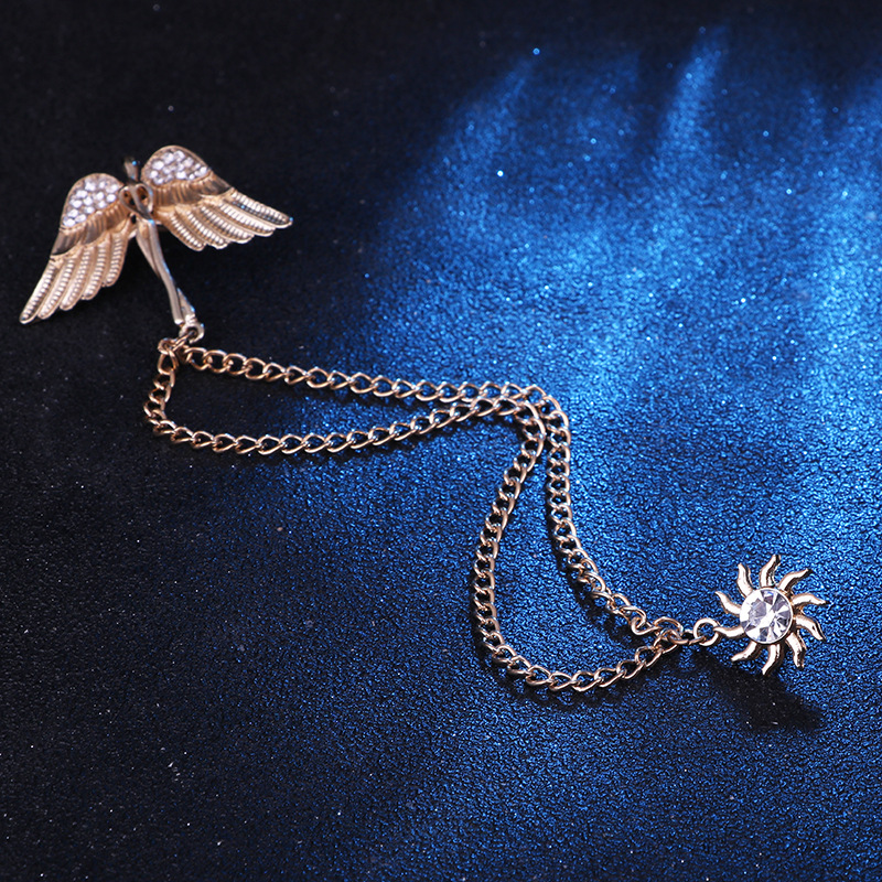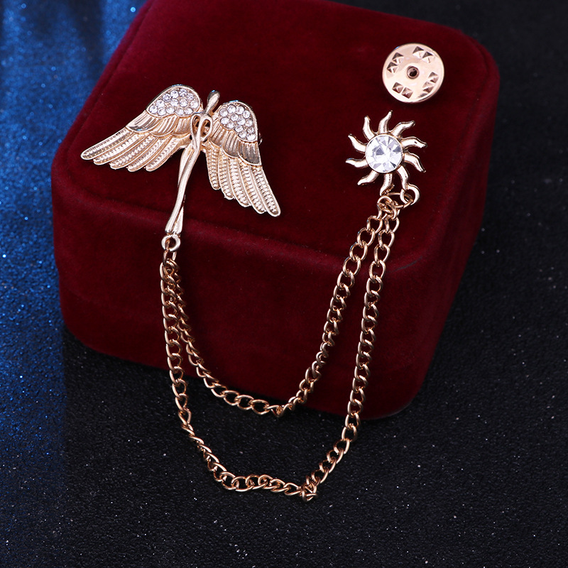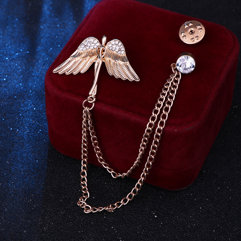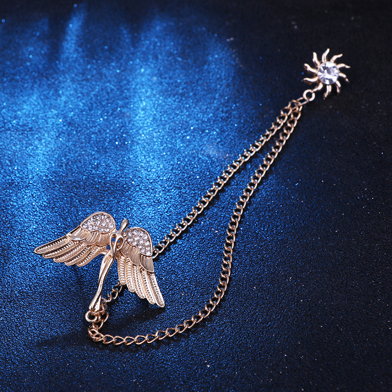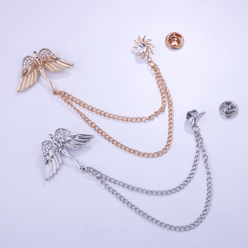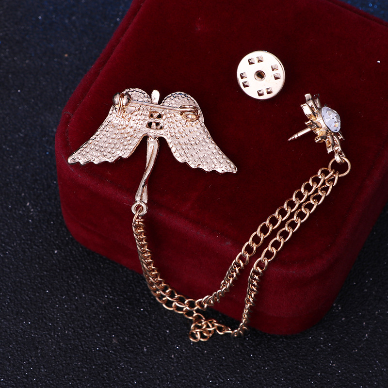 Men's Western-Style Angel Brooch with Alloy Chain Tassel and Jewelry Clasp