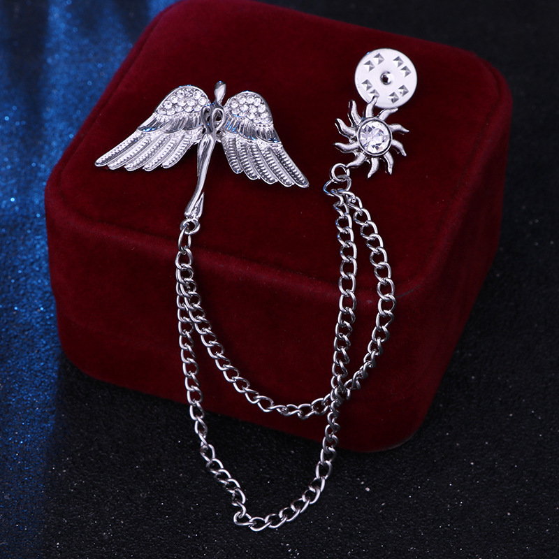 {"Shape":"Angel Wings","Style":"Men's","Function":"Decoration","Material":"Alloy","Packaging":"Individual Packaging","Serial Number":"11452","Inlay Material":"Alloy Inlay Artificial Gemstone/Semi-Gemstone","Fashion Element":"Metal, Tassel","Place of Origin":"Yiwu, Zhejiang","Custom Processing":"No","Production Number":"11452","Processing Technology":"Electroplating","Suitable for Gift Occasions":"Travel Souvenirs, Exhibitions, Advertising Promotions, Employee Benefits, Anniversary Celebrations, Business Gifts, Opening Ceremonies"}