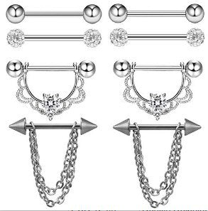 - ["High quality 4-piece titanium steel CZ piercing jewelry set","Full drill ball rings, chains, cones, and nails","Made of non-stainless steel","Unisex style","Medical grade steel"]