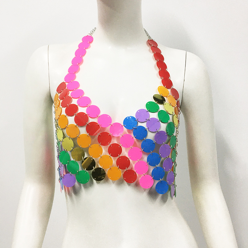 {"Cut":"Slim Fit","Style":"European and American Style","Length":"Super Short (≤40CM)","Pattern":"Geometric Pattern","Elasticity":"No Elasticity","Style Type":"Streetwear","Fabric Name":"Resin","Fashion Element":"Sequins","Shoulder Strap Style":"Hanging Shoulder Strap","Cross-border Style Type":"Sexy and Hot Girl","Main Fabric Composition":"Plastic","Main Fabric Composition 2":"Alloy","Main Fabric Component 2 Content":"Less than 30%","Main Fabric Composition Content":"95% and above"}