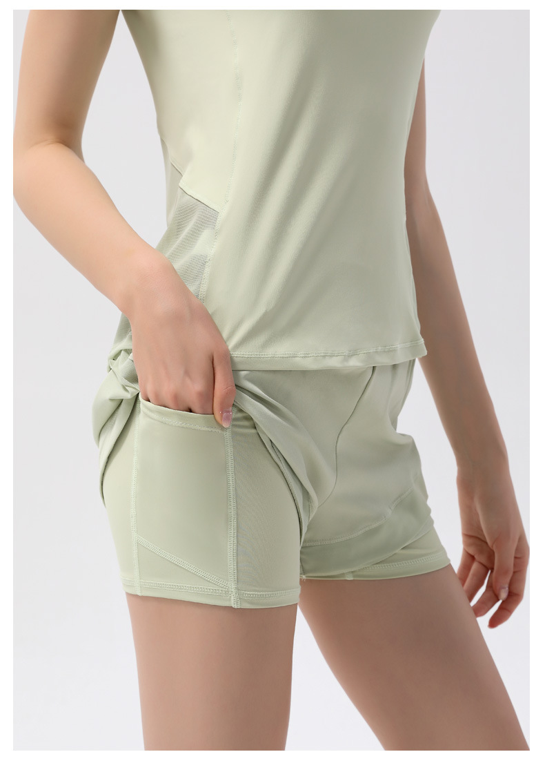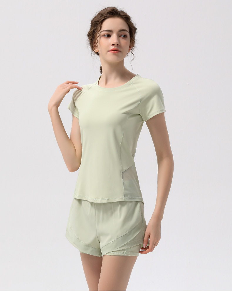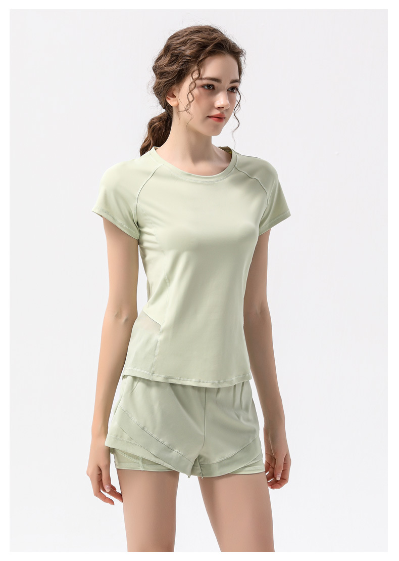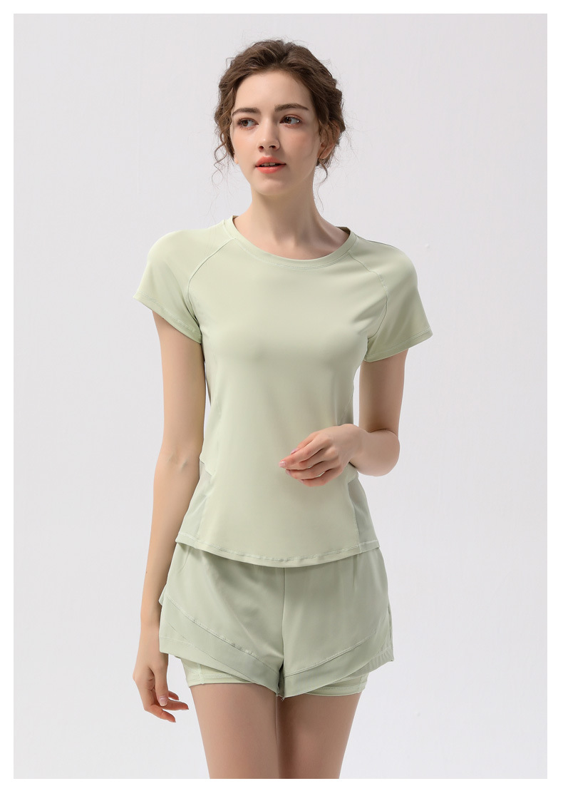 {"Style":"Casual","Hooded":"No Hood","Function":"Breathable","Age Range":"Adults","Removable":"Yes","Thickness":"Thin","Collar Type":"Round Collar","Fabric Name":"Chemical Fiber Blended Fabric","Pant Length":"Shorts","Patent Type":"None","Inner Lining":"With Inner Lining","Quality Grade":"First Class","Sleeve Length":"Short Sleeve","Fabric Content":"10","Place of Origin":"Jinhua","Applicable Gender":"Female","Fabric Composition":"Spandex","Suitable for Sports":"Fitness and Yoga","Seasonal Suitability":"Summer","Applicable Attributes":"Running Sports, Fitness Equipment, Fitness and Beauty, Sports Trends, Cycling Sports, Ice and Snow Sports, Extreme Challenges, Hiking and Camping, Shooting Sports, Martial Arts and Self-defense, Dance Sports, Badminton and Tennis Sports, Other Ball Sports, Swimming and Water Sports","Inspection Report Number":"None","Foreign Trade Export Certification":"None"}
