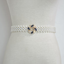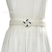 Women's Pearl Elastic Belt with Single Circle, 80-100cm Length, Fashionable Design and Embellished with Gems