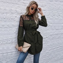 Autumn Sexy Lace Splicing Waistband Long Sleeve Shirt for Women 18-24 Years Old