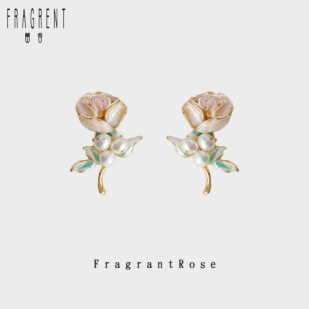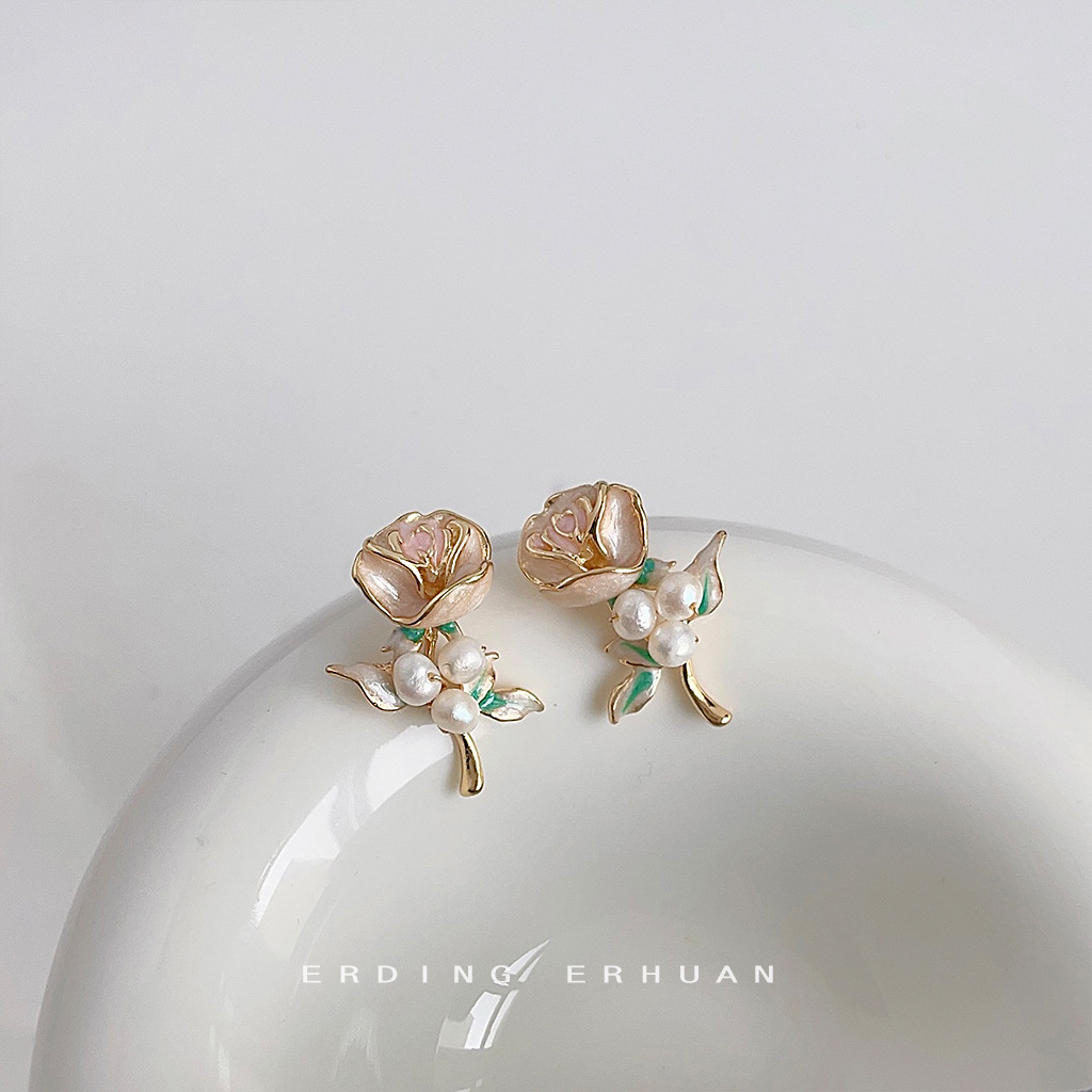 Stunning 14K Rose Flower Earrings with Freshwater Pearl Handcrafted Design
