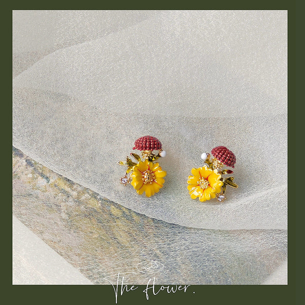 925 Silver 14K Floral Earrings with High Quality Enamel and Fresh Style for Women