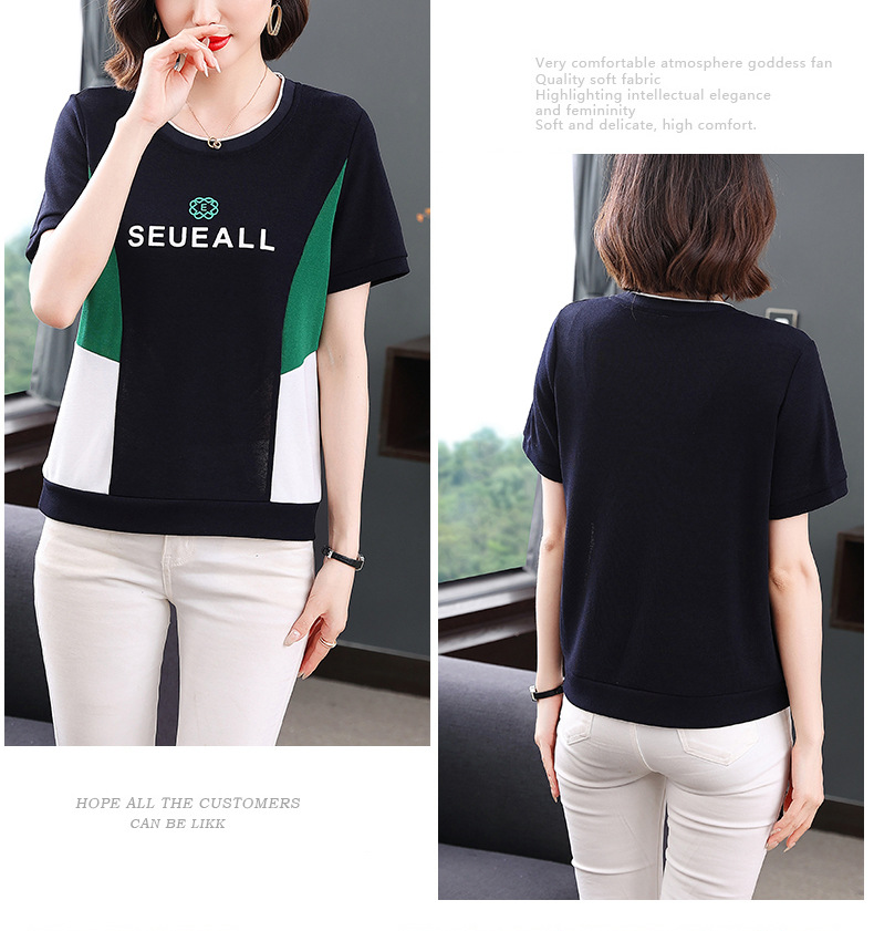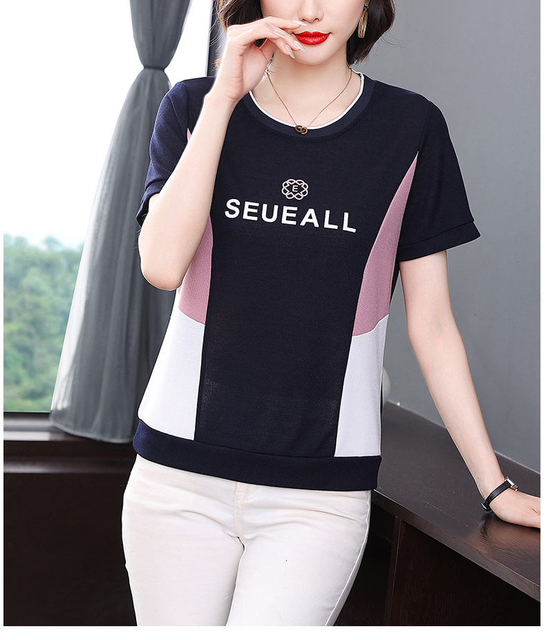 40-50 Year Old Mom Summer Short Sleeve T-Shirt New Style Slim Fit Casual Fashionable Top