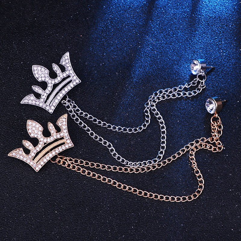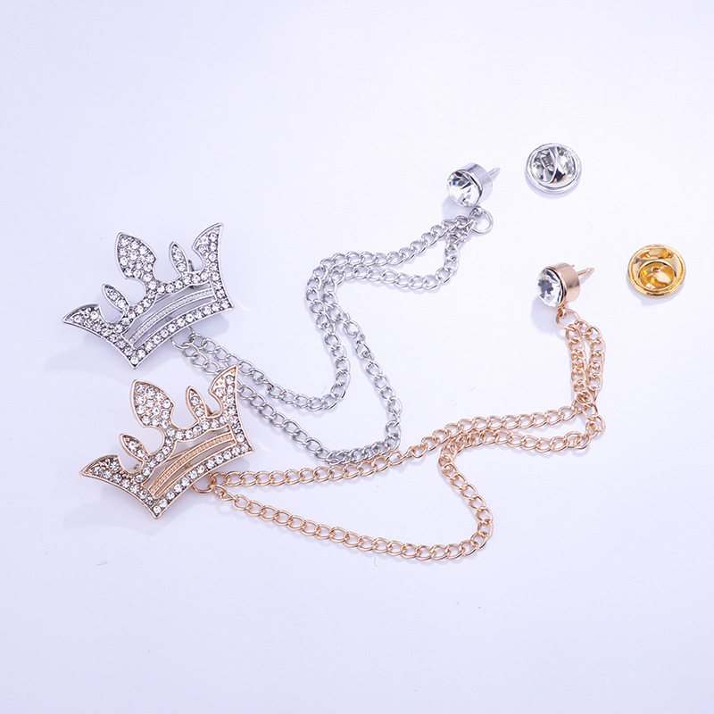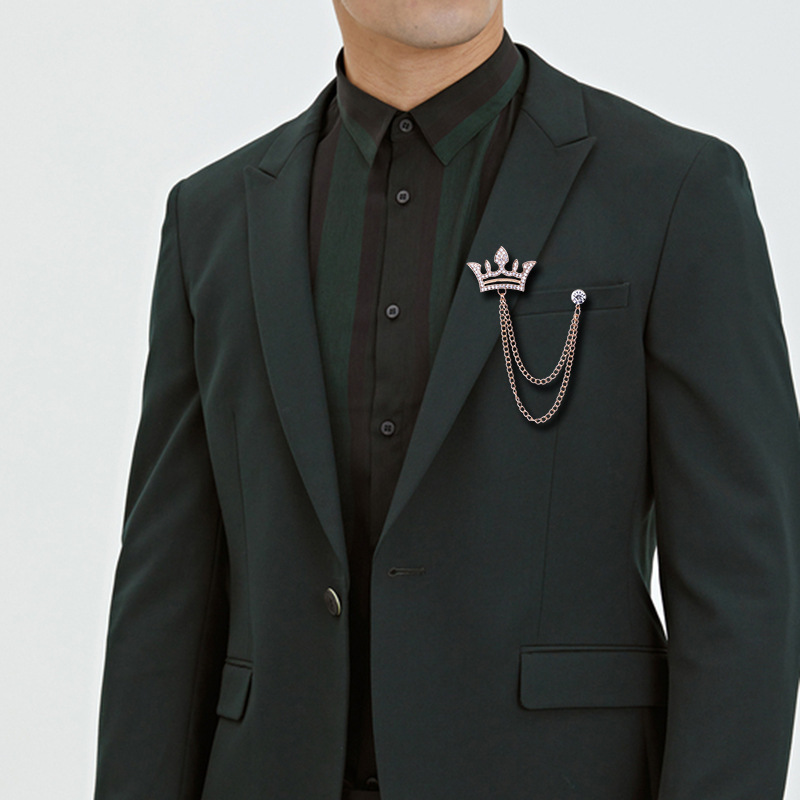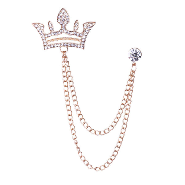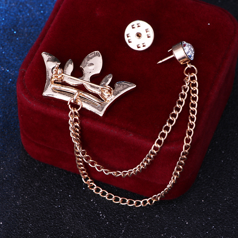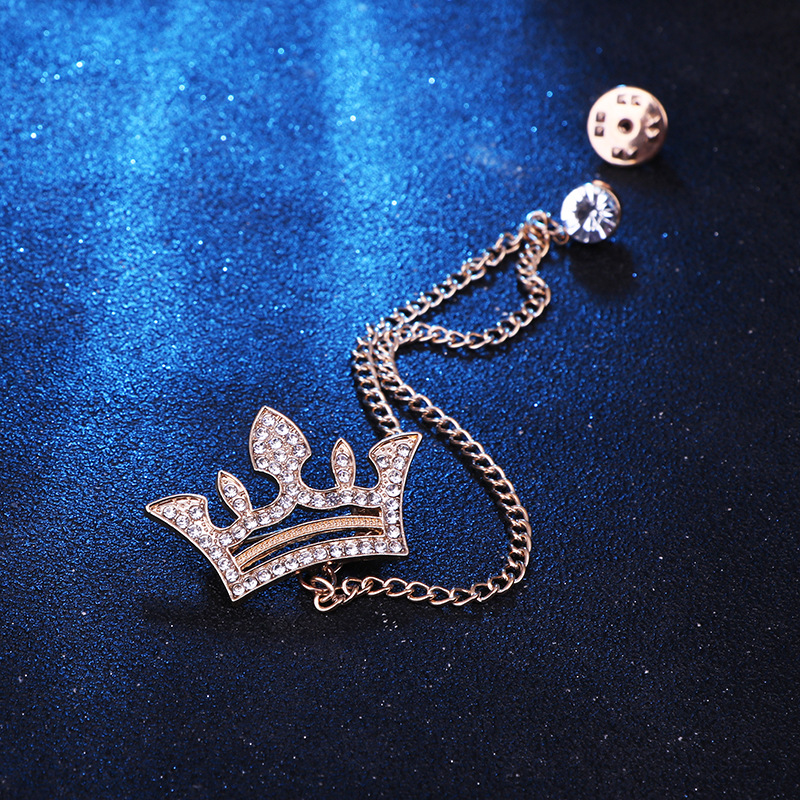 Stylish Mens Crown Tassel Brooch with Half Pearl and Jewelry Processing Craftsmanship