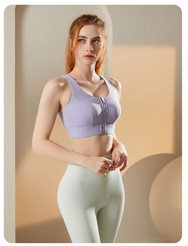 - ["Shock Absorption and Support for Running, Yoga, and Fitness","75% Cotton and 25% Silk Material","3/4 Cup Style","Fixed Double Shoulder Straps","Front Closure"]