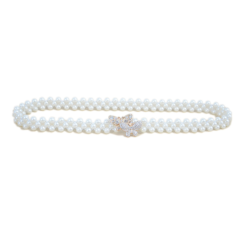 - ["Made of high quality pearl material","Fashionable butterfly water diamond buckle","Suitable for skirt outfit","Single circle design","Adjustable length"]