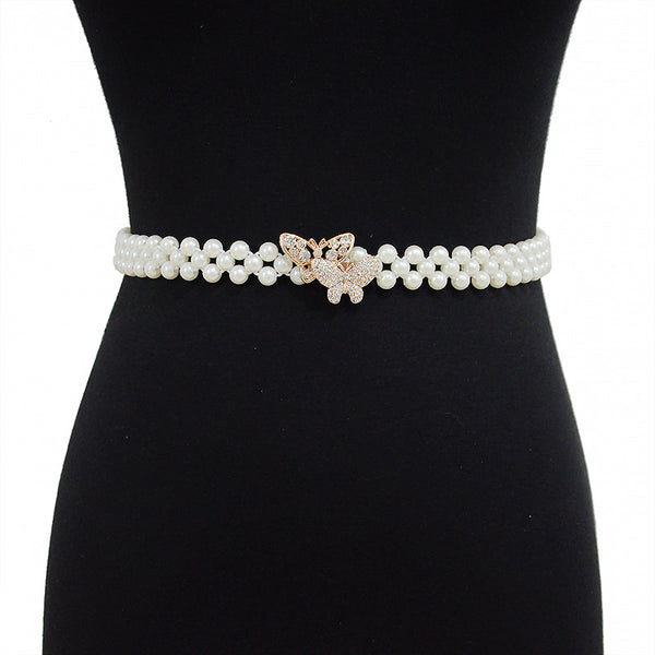 Summer New Women's Pearl Waist Chain Casual Decorative Butterfly Water Diamond Buckle for Skirt Outfit