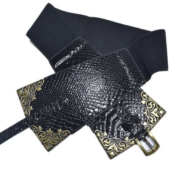 Women's Retro Buckle Wide Waist Belt with Golden and Silver Decoration, Width Greater Than 4cm