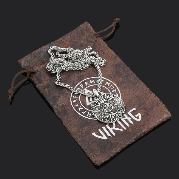 Men's Stainless Steel Carved Flower Pendant Nordic Viking Myth Life Tree Necklace