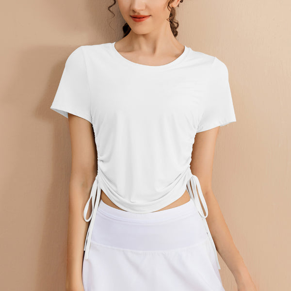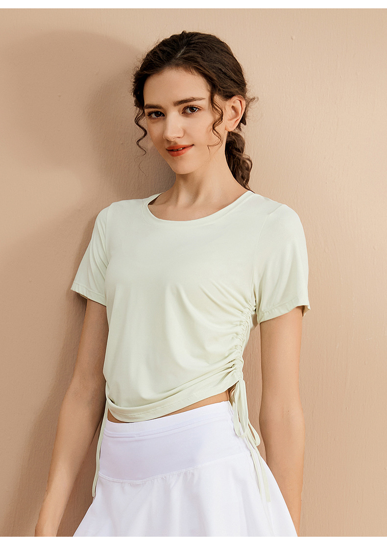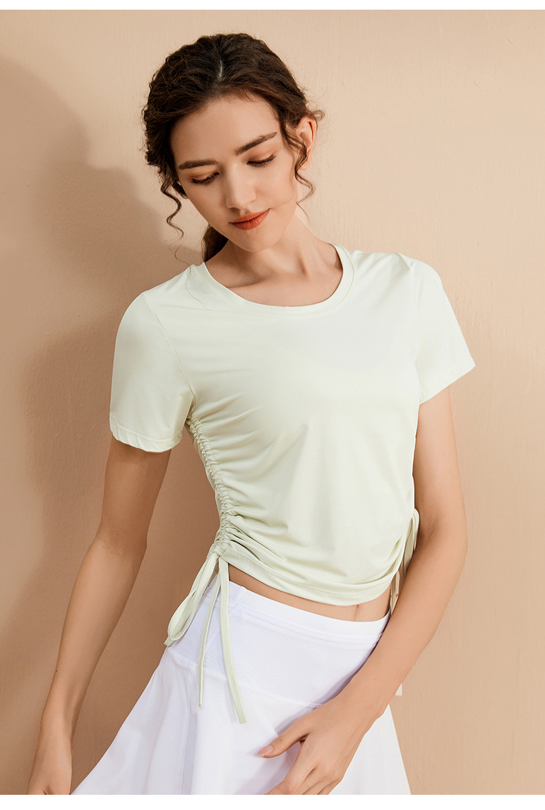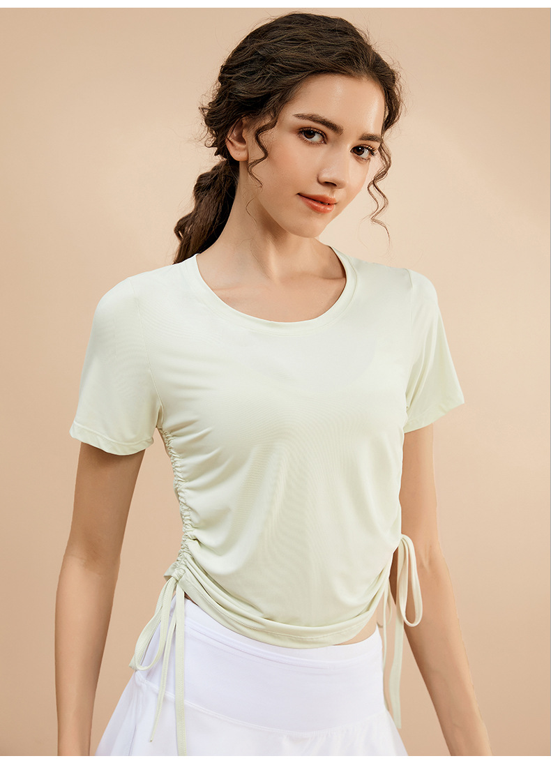 - ["Made of polyester blend material for comfort and breathability","Short sleeve and round neck design for a casual look","Sweat-absorbing and quick-drying fabric for better performance","Suitable for running, exercise, fitness, dancing, pratilasana and other activities","1-2cm size difference for manual measurement"]